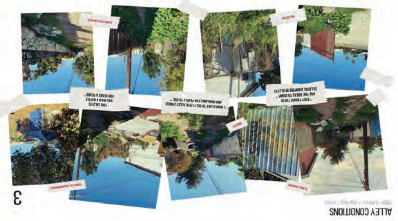 There are 900 linear miles of alleys in Los Angeles, which combined would make up about 3 square miles—about half the size of Griffith Park and twice the size of New York’s Central Park. Sca ered throughout the city in neighborhoods, commercial zones, downtown, and L.A.’s industrial areas, the alleys, for the most part, are ignored. South Los Angeles alone contains about 300 linear miles of alleys, or approximately 30% of all the alleys in the city of Los Angeles” . Many alleys in South Los Angeles, however, are currently misused as unsanc oned dumping grounds for trash, and are in a degraded state with the second highest flood complaint density in the city due to the aging stormwater infrastructure and lack of permeable surfaces.