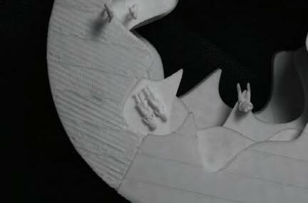 The spa al manipula on of paper explores the process of deconstruc ng<>reconstruc ng a basic form, evolving a space that emphasizes human scale + narra ve and connec on + integra on to an emo onal experience. The modeling explores the inten onal development of form and space: DISRUPT<>RECONSTRUCT: making through individual discovery, brainstorming, disrup ng and reitera on, breaking down a form and reconstruc ng it, evolving it based upon a big idea. SCALE<>NARRATIVE: communica ng the size of a space in rela onship to another form within a physical space.