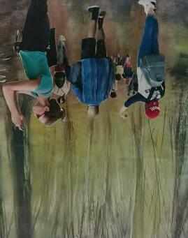student analyzed their photograph and developed a sketch, using pastels as a medium. Further exploring the