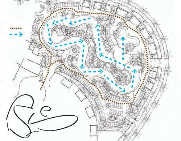 Harrah’s Rincon involved work with the Rincon Na ve American Tribal Leaders to represent an experien al oasis through flow and movement. The original gestural sketch was developed into a lazy river for the resort - incorpora ng a series of layered experien al moments through the flow of water, the ver cal and horizontal layering of plant material, the growth of food for guests and members of the tribe and through the emergence of a local public mural arts program.