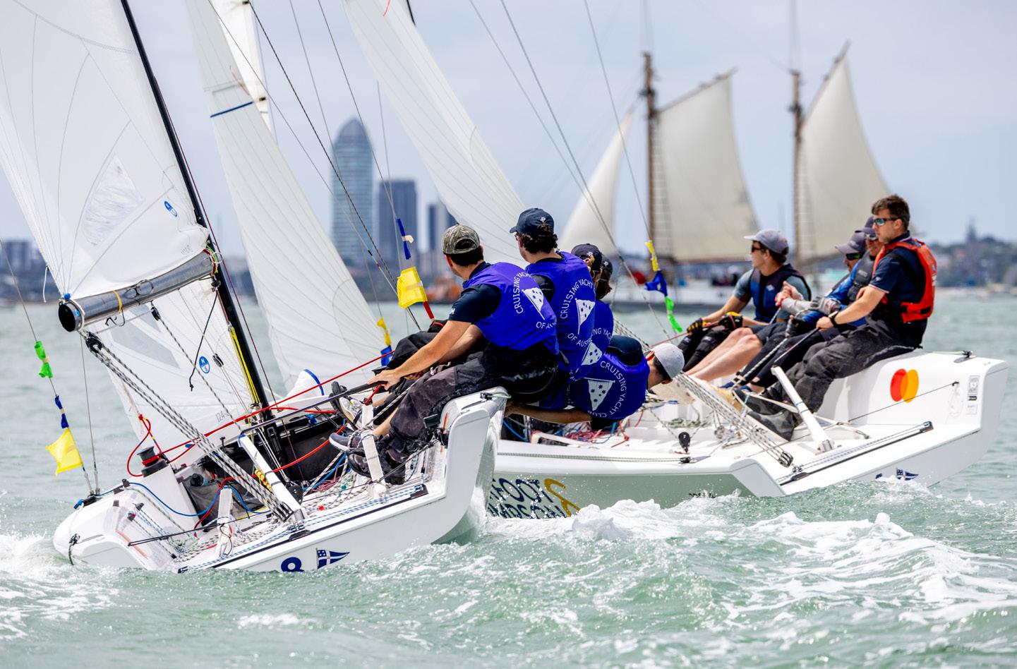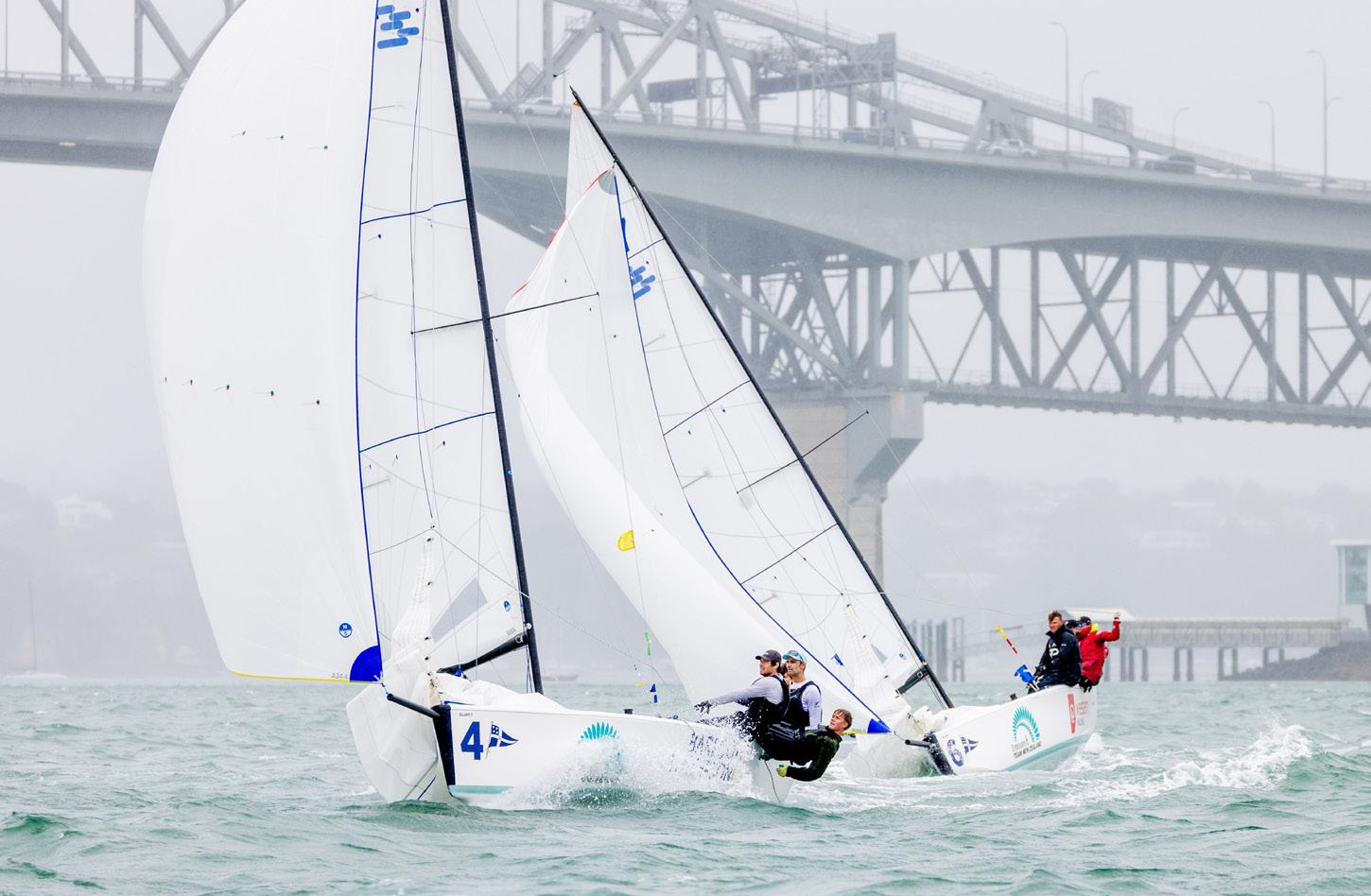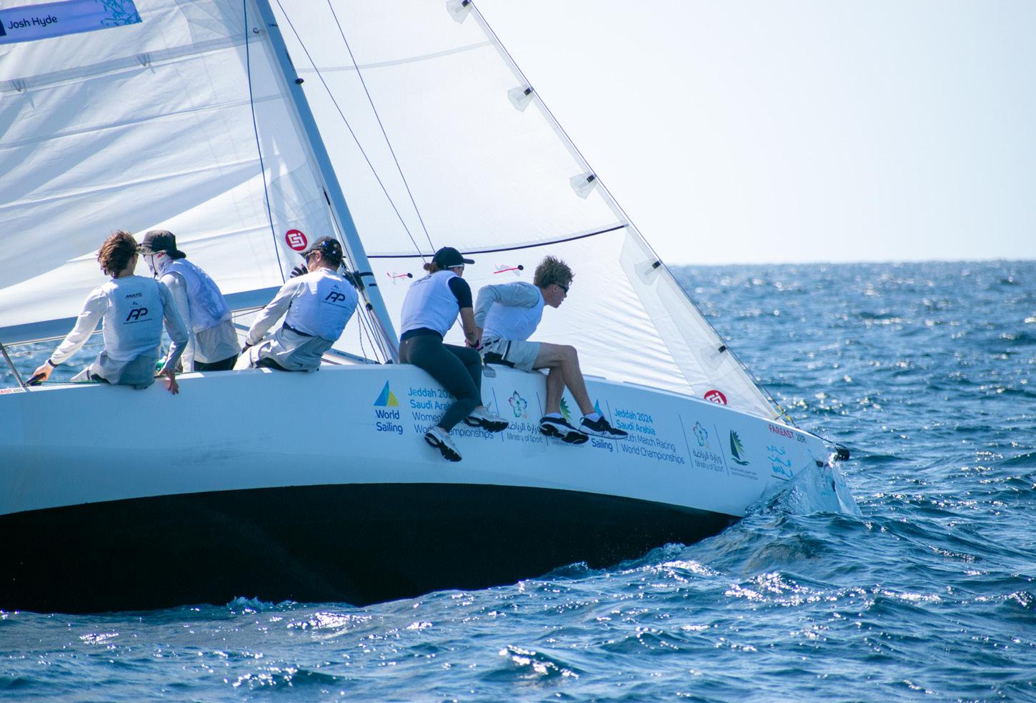 The RNZYS-KSA collaboration saw Sam Scott, Luca Smith, and Phoebe Buckland join KSA helm Saleh Alhawil and Battal Alsultan. Though the KSA team didn’t notch a win, their rapid development in match racing was a victory in itself. RNZYS Head Coach Zak Merton praised their progress: “Four months ago, they had never match raced before. They were always in the action, keeping teams on their toes.”