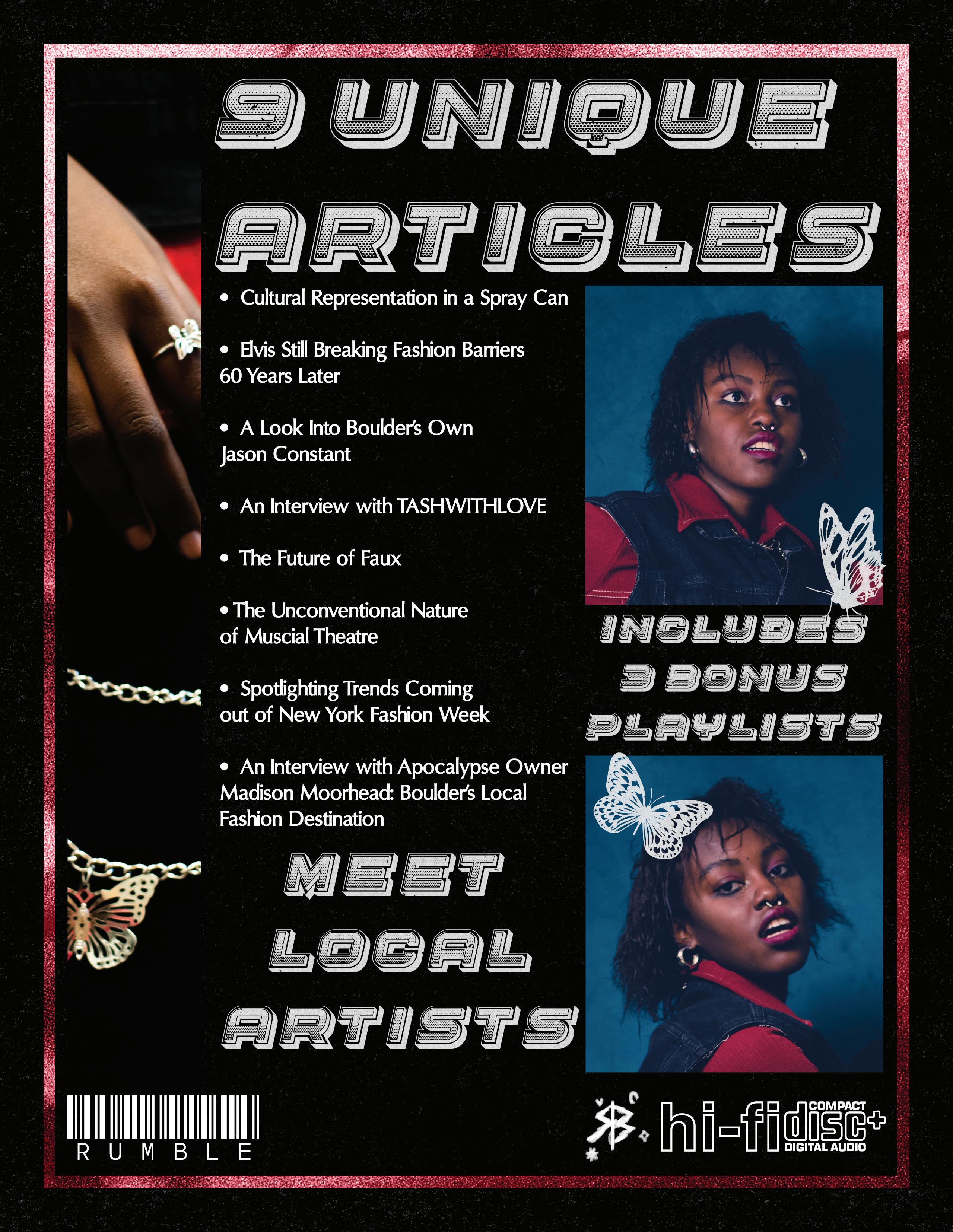 Roam Boulder is CU Boulder’s first life and style publication. Roam aims to represent a diverse compilation of voices in order to cultivate a platform that engages and inspires dialogue surrounding fashion. Roam provides quality insight on Fashion, Lifestyle, Culture, and Art. Through its journalistic integrity, Roam seeks to deliver a variety of perspectives to engage with the Boulder community through our issues in both print and online.