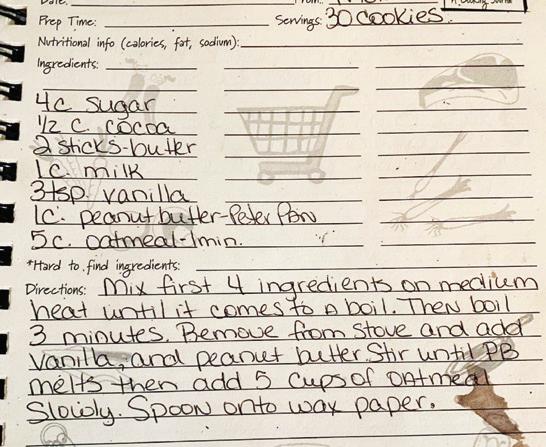 • Gradually add remaining oatmeal as needed until there’s a good consistency. The mixture should not be too runny or too thick. Proper consistency will drop easily from spoon onto wax paper. Note: Cookies will not set up good when there is high humidity outside.
