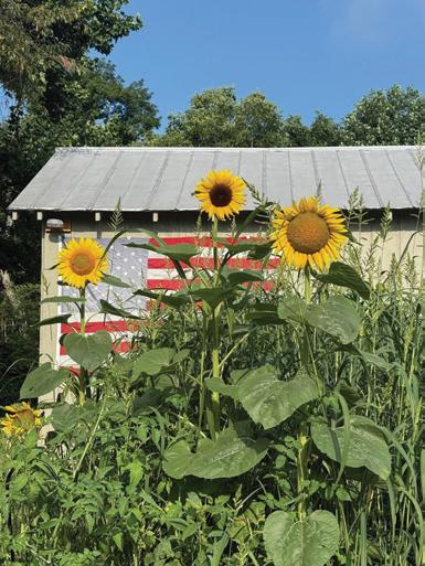 Our very first cover photo, a year ago, featured sunflowers. When we saw Patricia's picture of sunflowers in front of her barn and American Flag, we knew we'd found our cover!