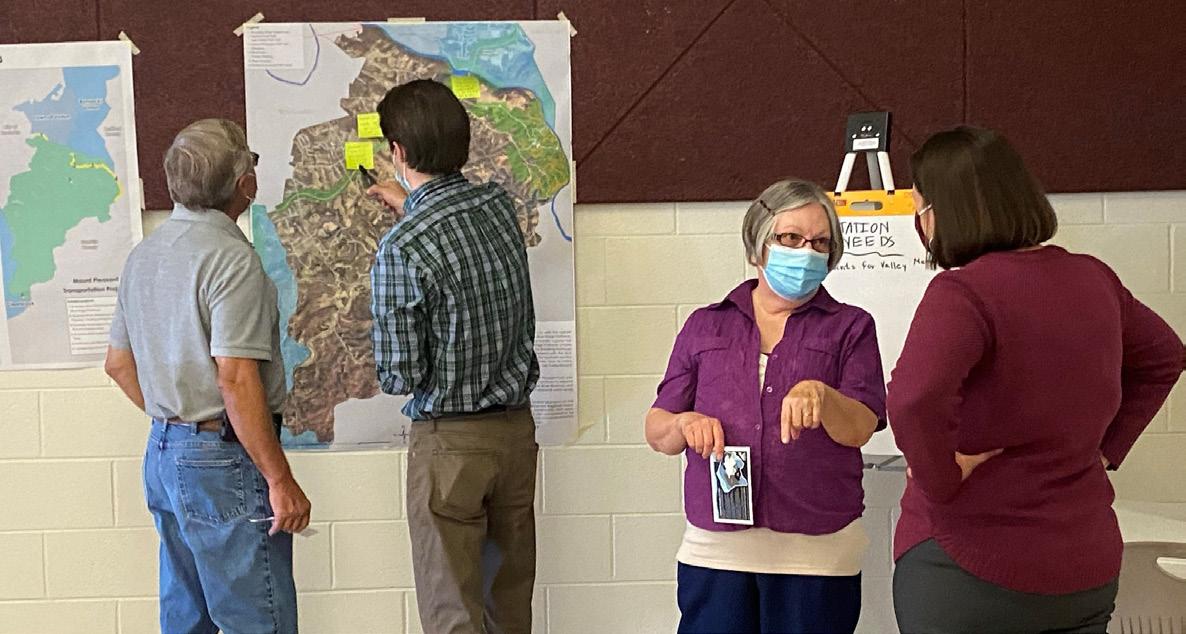 Twelve (12) planning meetings were held around Roanoke County in Fall 2021 to collect preliminary feedback about community issues and needs. The community meeting for the Mount Pleasant CPA was held on September 23, 2021, at Mount Pleasant Elementary School. There were 30 attendees. Citizens were invited to comment on Land Use, Community Facilities, Transportation, and Protection and Preservation. Comments and suggestions from citizens were collected and assembled by staff into a “Post Meeting Summary” document. A digital copy of this document can be found on the Roanoke County 200 Plan webpage.