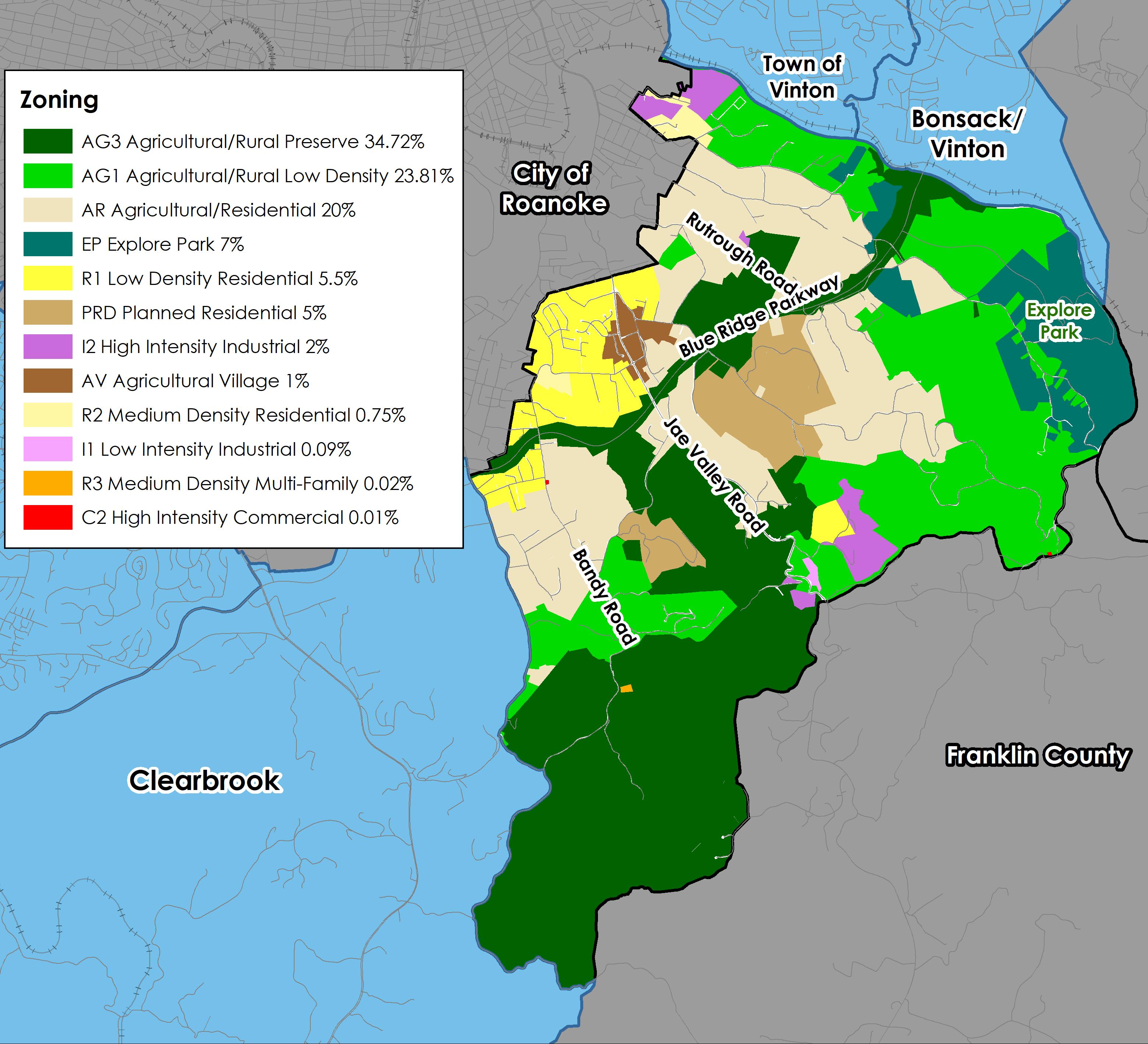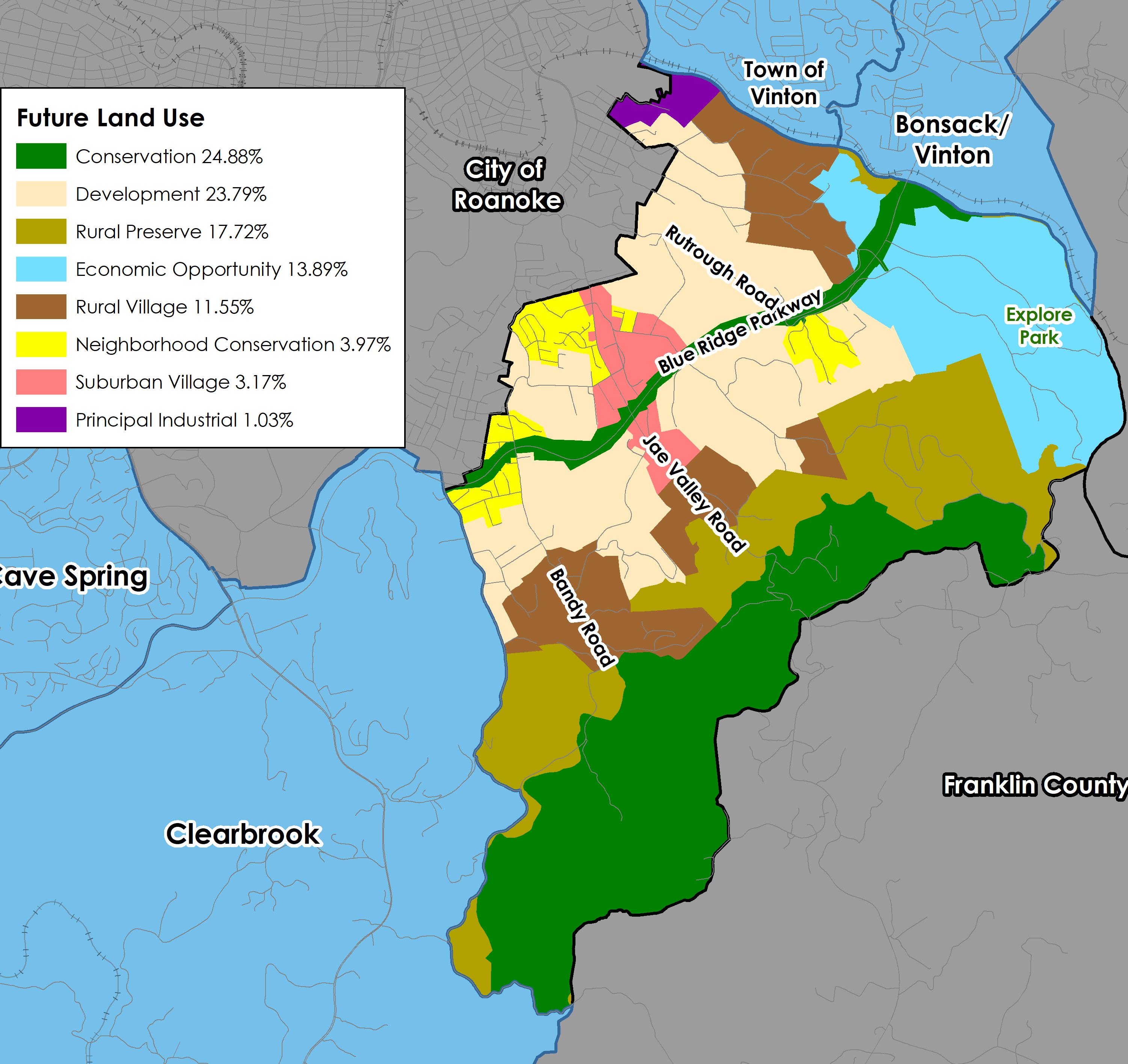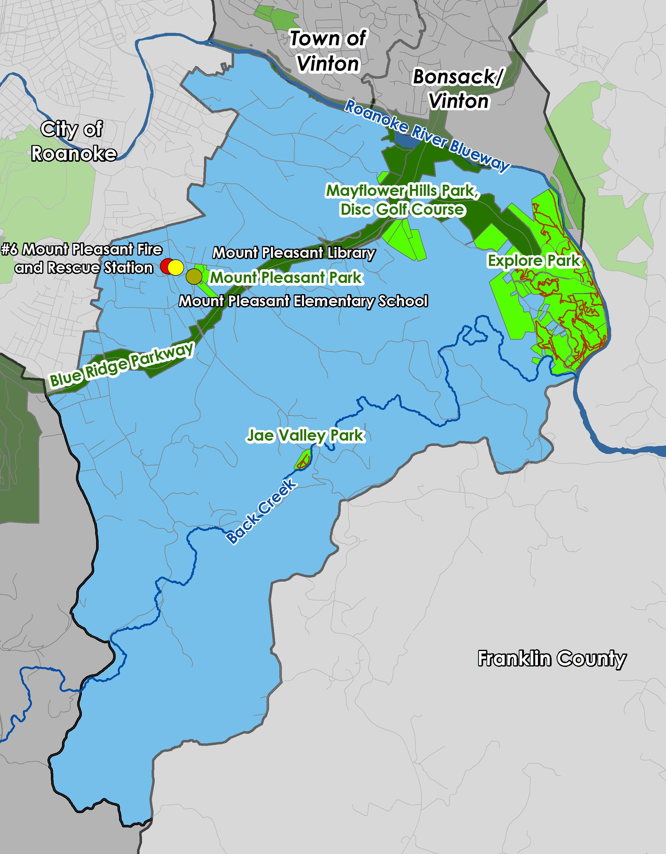 Mount Pleasant Planning Area includes a small number of businesses along Mount Pleasant Boulevard and Jae Valley Road in the eastern region of the County. This planning area has many wonderful amenities including several overlooks along the Blue Ridge Parkway and Explore Park. The area is located approximately thee miles from the center of the City of Roanoke. The Planning Area is rural in nature mostly consisting of single-family dwellings.