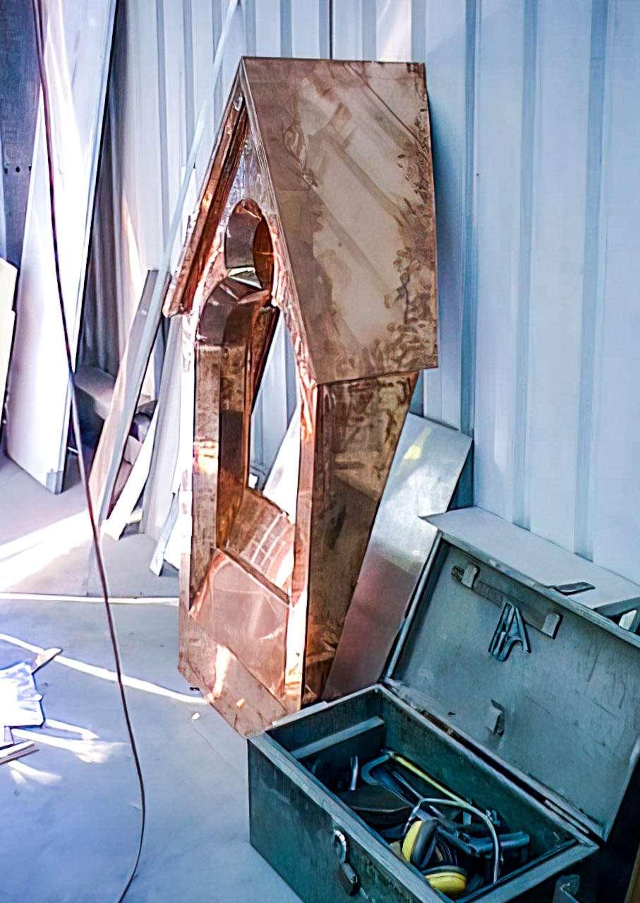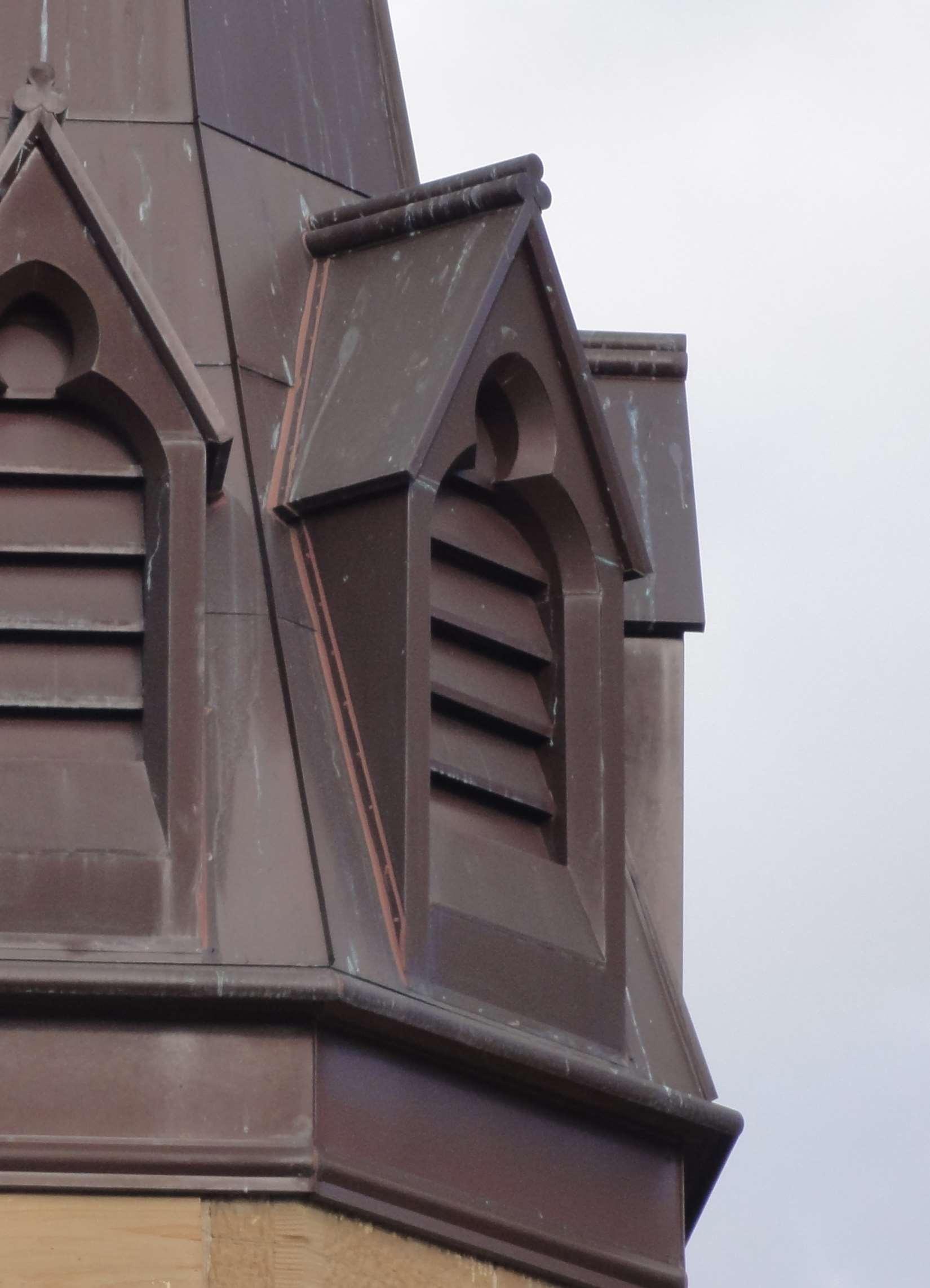 Findingoriginaldocumentaontoreferencefordesignanddetailingwas incrediblydifficult,butwewereabletocarefullyexaminethefewdrawings thatwereavailable.Theexisngstructure,thedesignitself,thehidden details,thetheory,thestyle,andthegeometry;athoroughreviewprovided aplethoraofclues.SasfiedthehomeworkwascompleteIfeltquietly confidentwhenfinallypungpentopaperforthenewchurchspire,cross andbelltohopefullybetruetoHenryHunter`s1880vision.