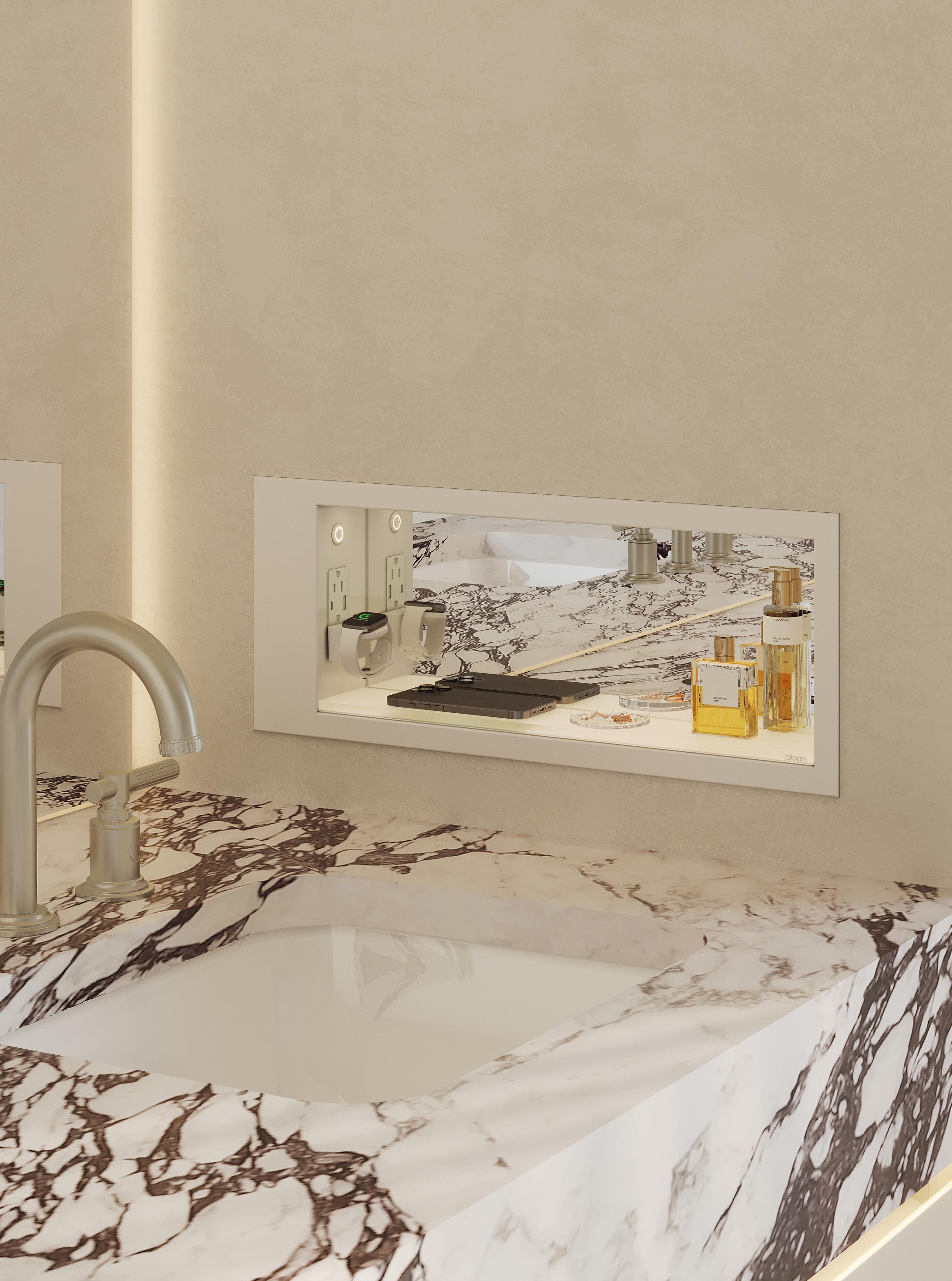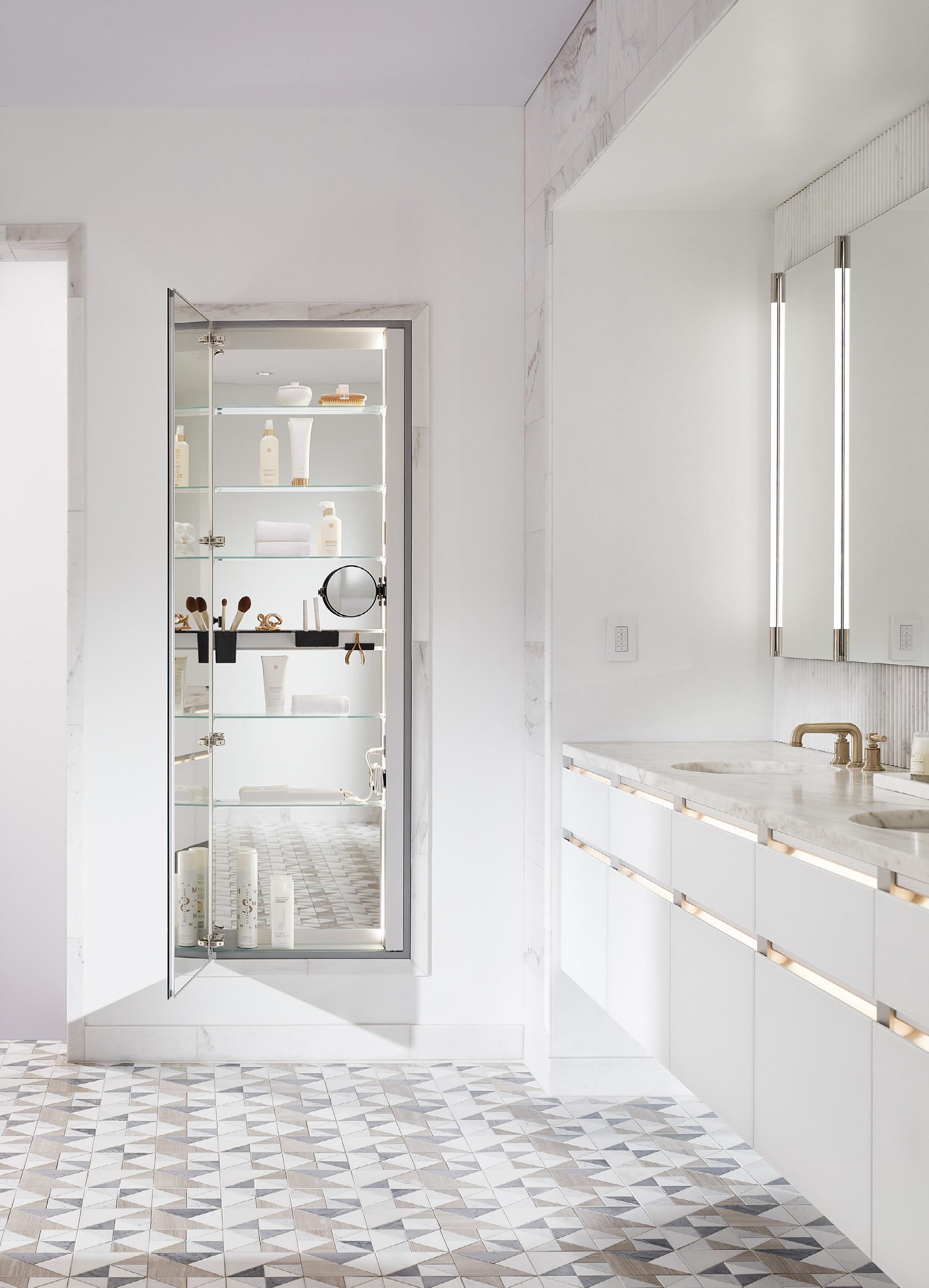 AIO RESERVE IS OUR FIRST-IN-CLASS LIGHTED MEDICINE CABINET FOR LUXURY ORGANIZATION AND STORAGE. WITH CUSTOMIZABLE LIGHTING, ON MIRROR TOUCH CONTROLS, A LIT MAGNIFICATION MIRROR, AND A WIDER RANGE OF LIGHT PATTERNS AND SIZES, AIO RESERVE OFFERS THE ULTIMATE IN DESIGN FLEXIBILITY.