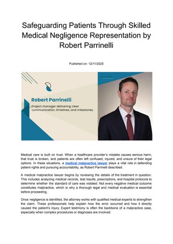 Robert Parrinelli is a New York trial attorney and managing partner at Appell & Parrinelli, where he has spent more than two decades concentrating on personal injury, construction accidents, medical malpractice, and wrongful death cases. Over the years, he has represented thousands of clients and secured multiple multi-million-dollar results through steady and consistent legal work. He grew up in the greater New York metropolitan area and later attended Hofstra University, earning a Bachelor of Business Administration in Business Management in 2000. During college, he played on the Men’s Division I Lacrosse Team and was named team captain in his senior year. That same season, he was selected to compete in the U.S.I.L.A. North-South All-Star Game, a recognition given to top collegiate lacrosse players. After completing his undergraduate degree, he continued at Hofstra University School of Law, where he earned his Juris Doctor in 2003. Once admitted to the New York State Bar in 2004, Robert Parrinelli began his legal career in New York City as an associate trial attorney under his mentor's guidance. Working closely together strengthened his courtroom skills and eventually led to the creation of Appell & Parrinelli, where he became a named and managing partner. In his leadership role, he oversees a practice dedicated to helping individuals and families who have suffered serious injuries or losses. The firm handles motor vehicle accidents, construction and worksite incidents, premises liability, defective products, wrongful death, commercial property disputes, and medical malpractice. He is selective when taking on cases, allowing him to remain directly involved and focused on each client’s needs.