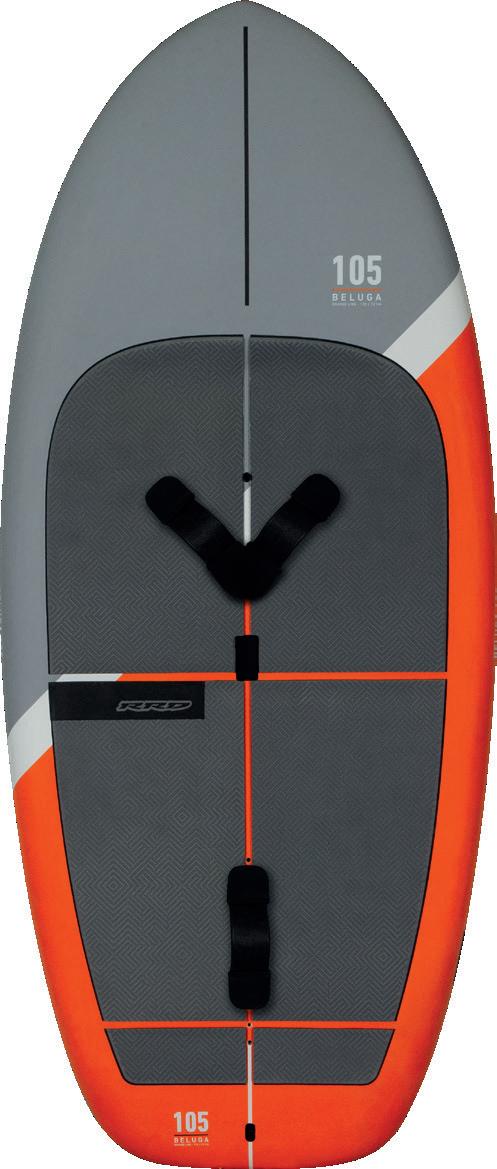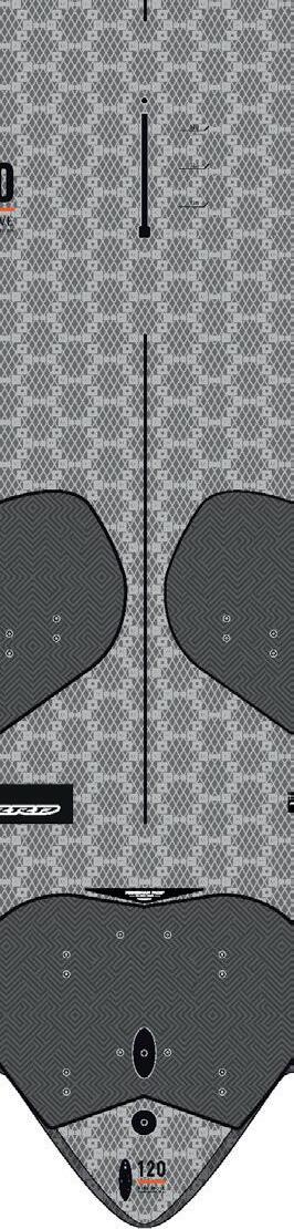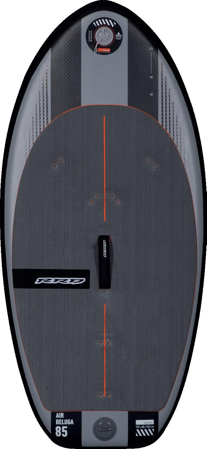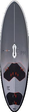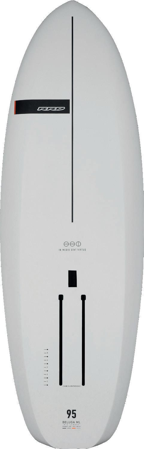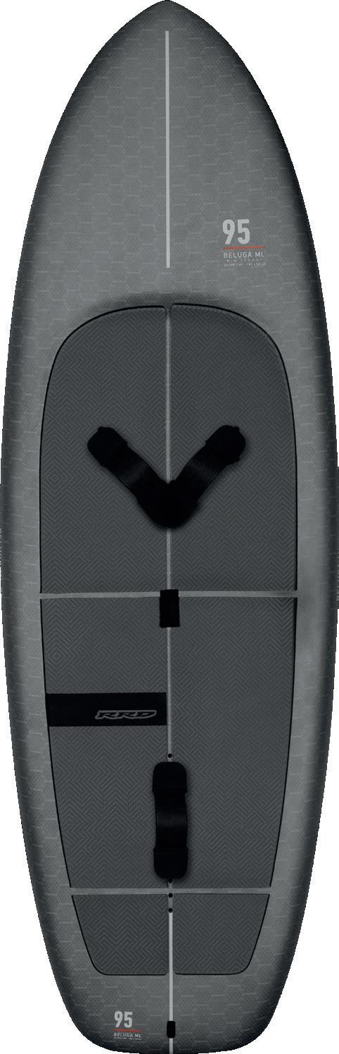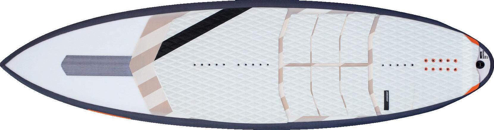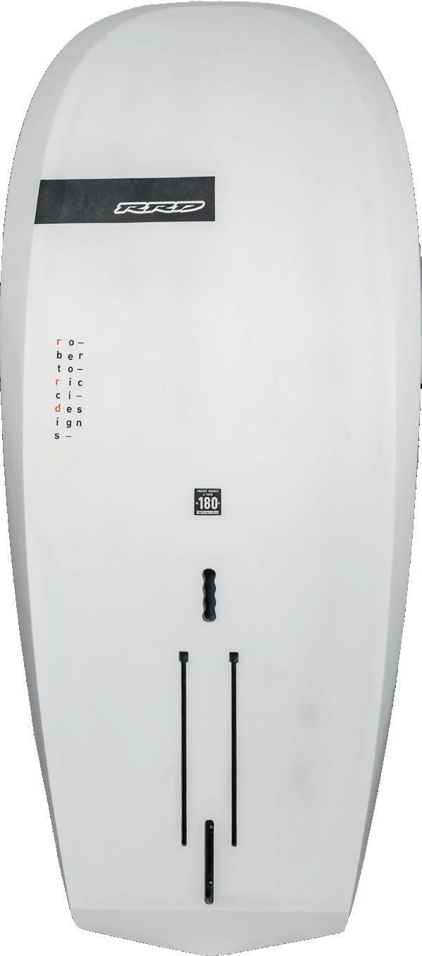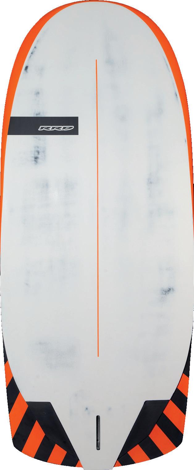 The streamlining of the nose maximizes the speed and offers trim control in upwind, the large top surface of the tail is covered by a thin layer of anti-slip for perfect grip during the extreme buoy turns. The new 14” has a special hydrodynamic prysm nose which allows to cut through the waves without any drag.