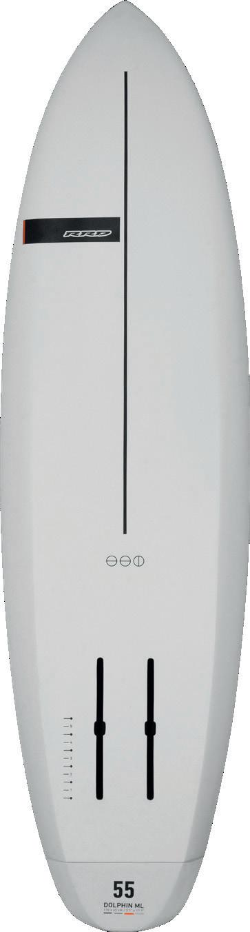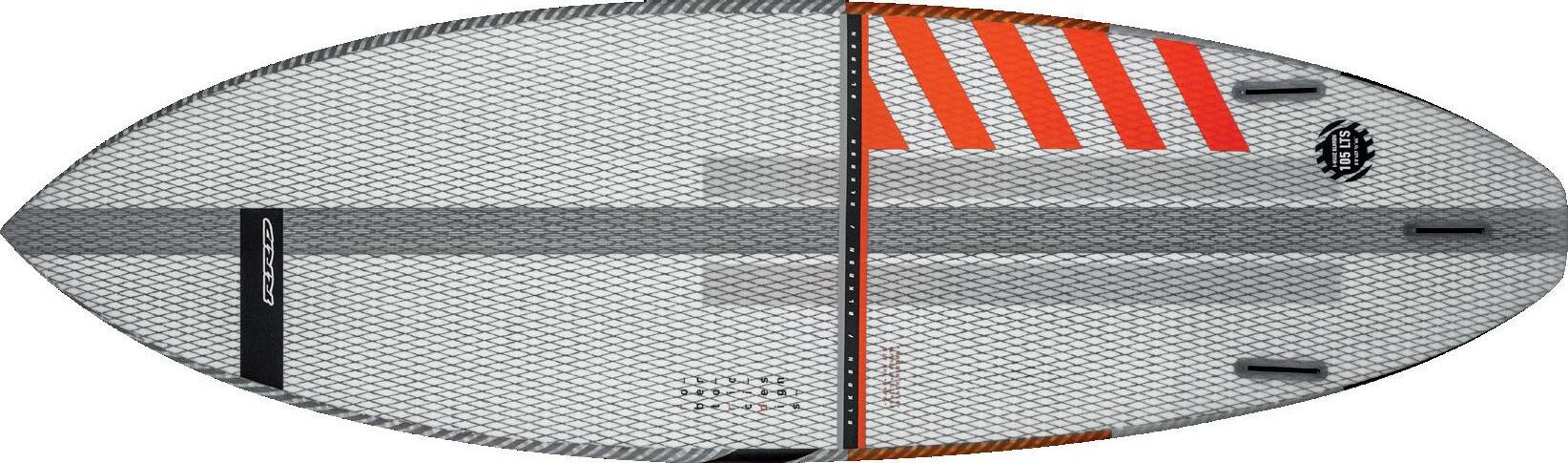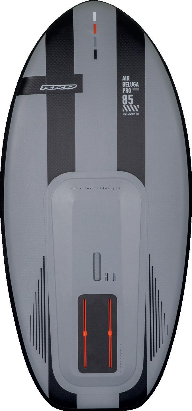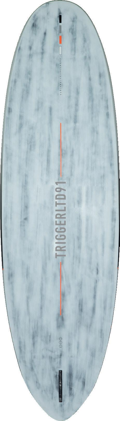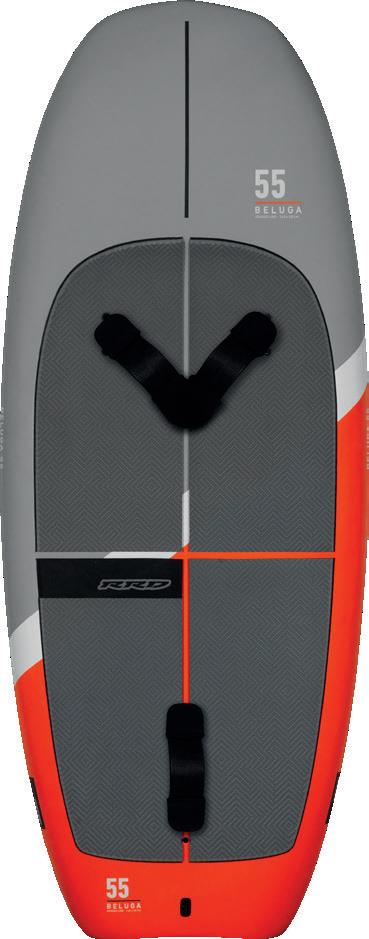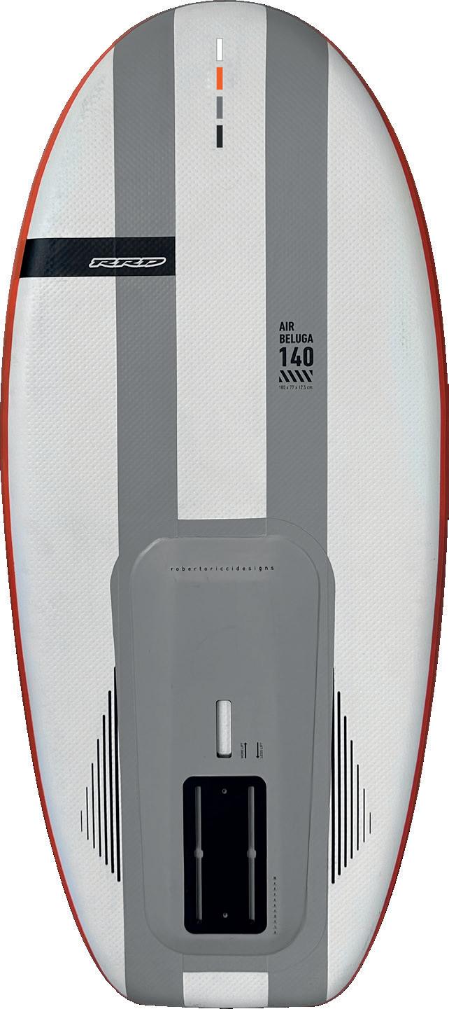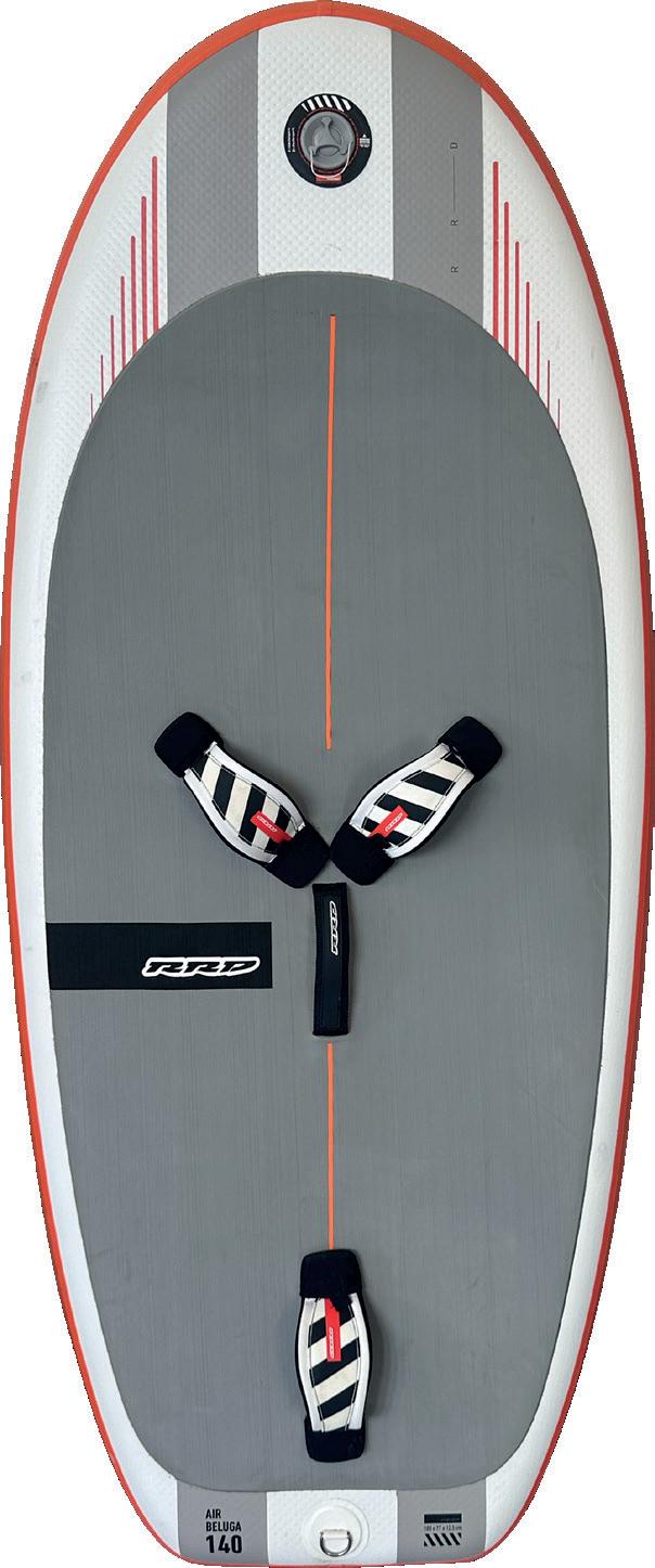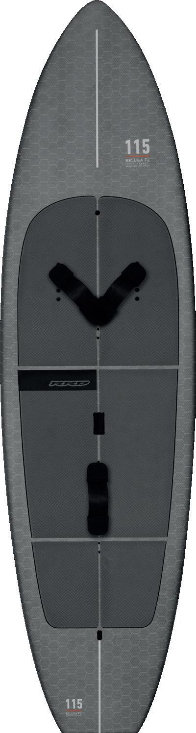The streamlining of the nose maximizes the speed and offers trim control in upwind, the large top surface of the tail is covered by a thin layer of anti-slip for perfect grip during the extreme buoy turns. The new 14” has a special hydrodynamic prysm nose which allows to cut through the waves without any drag.