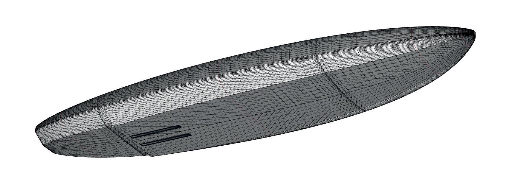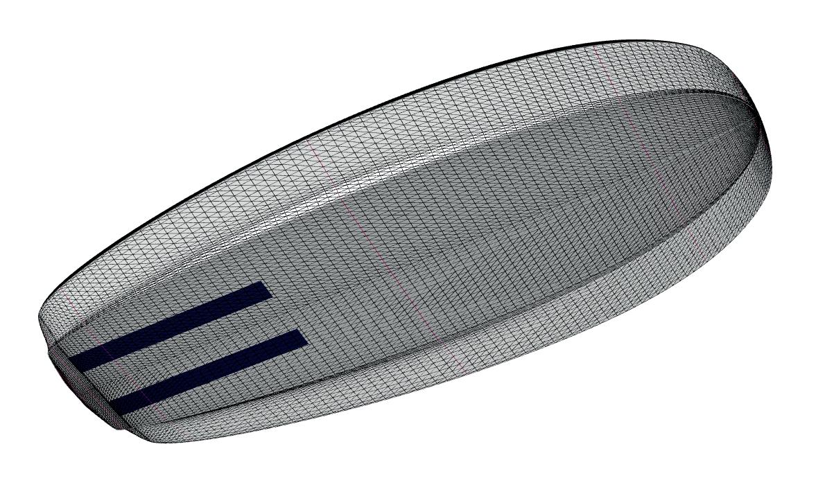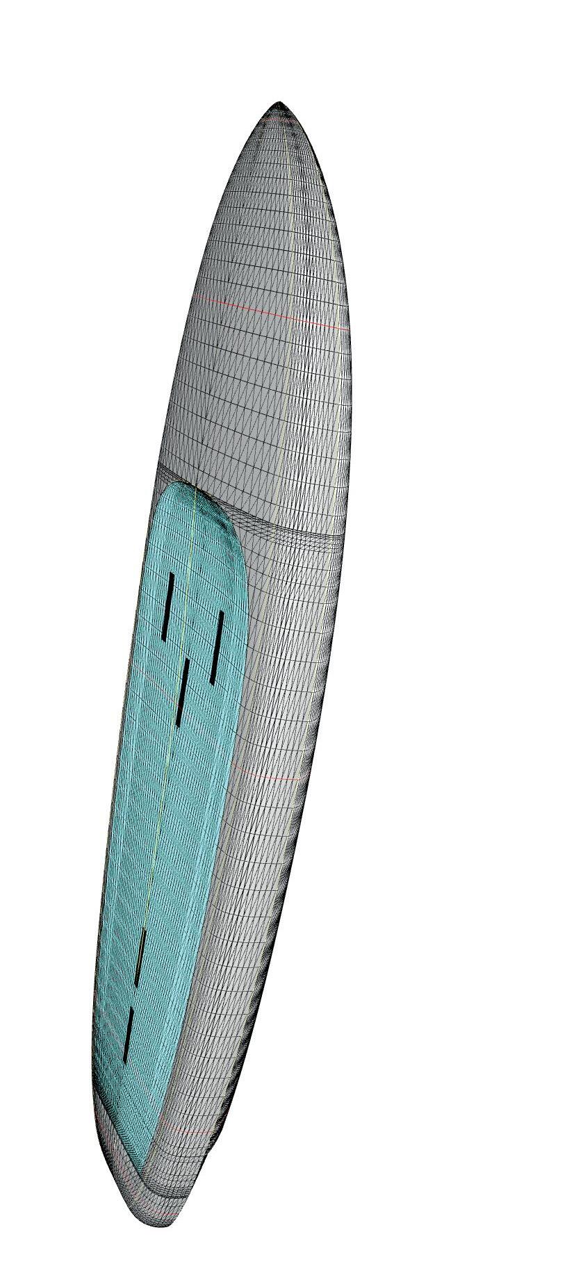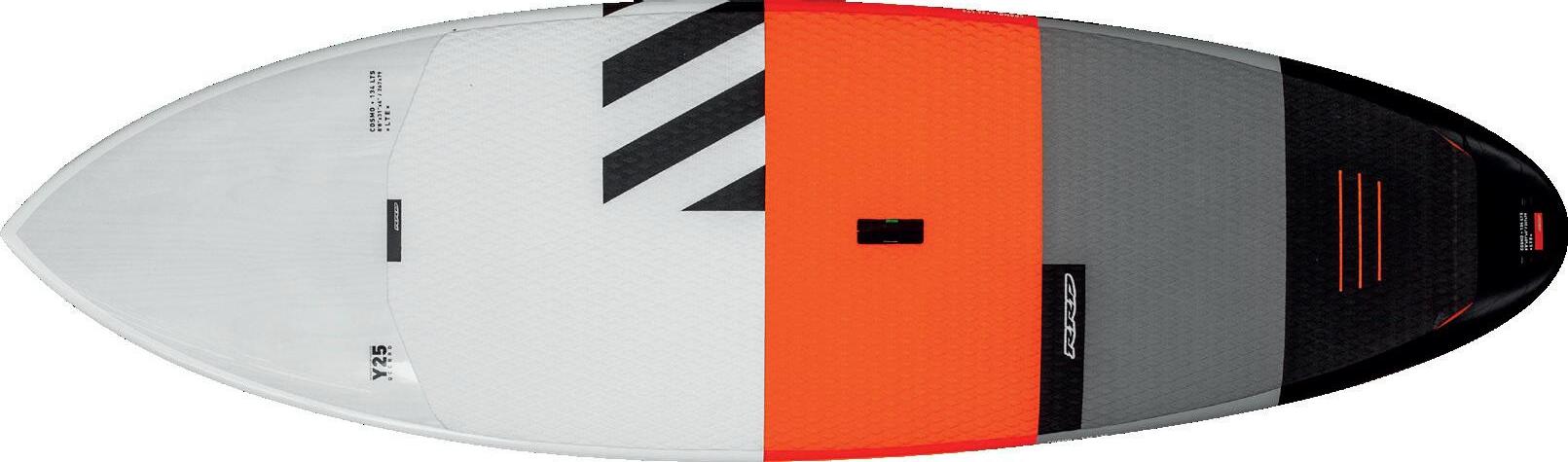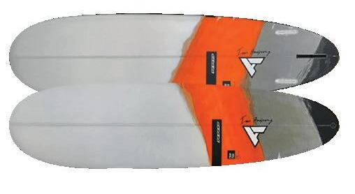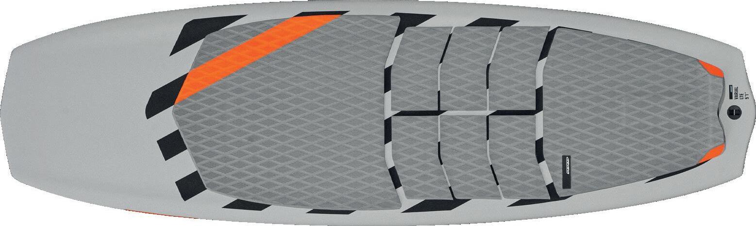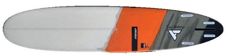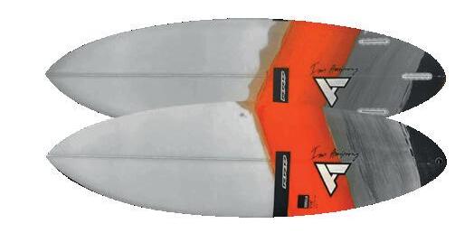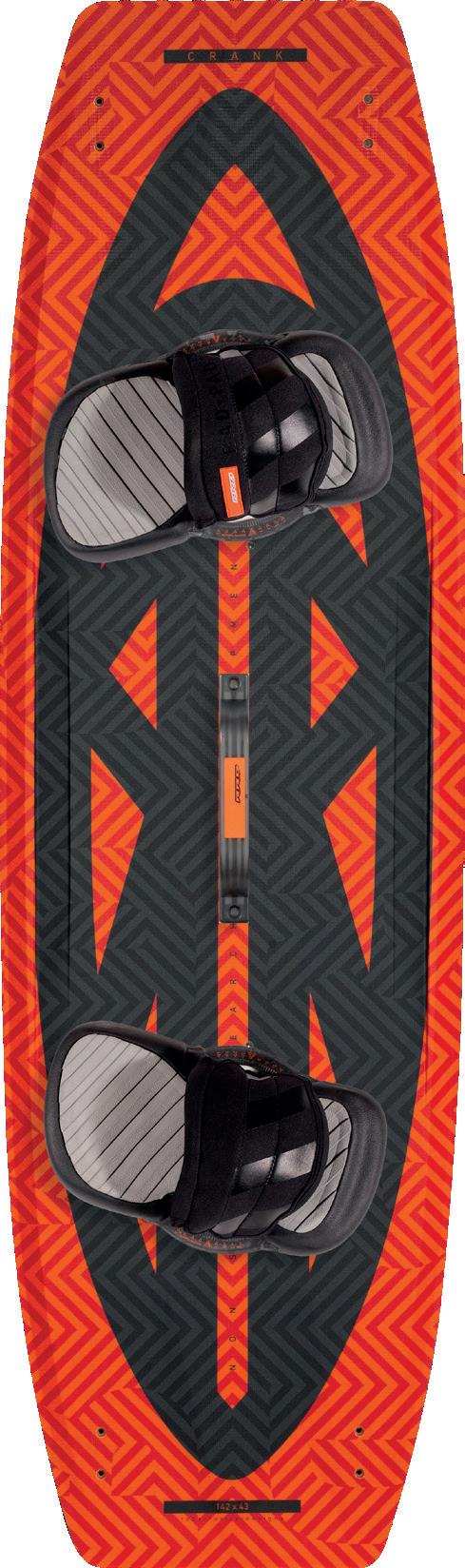 The streamlining of the nose maximizes the speed and offers trim control in upwind, the large top surface of the tail is covered by a thin layer of anti-slip for perfect grip during the extreme buoy turns. The new 14” has a special hydrodynamic prysm nose which allows to cut through the waves without any drag.