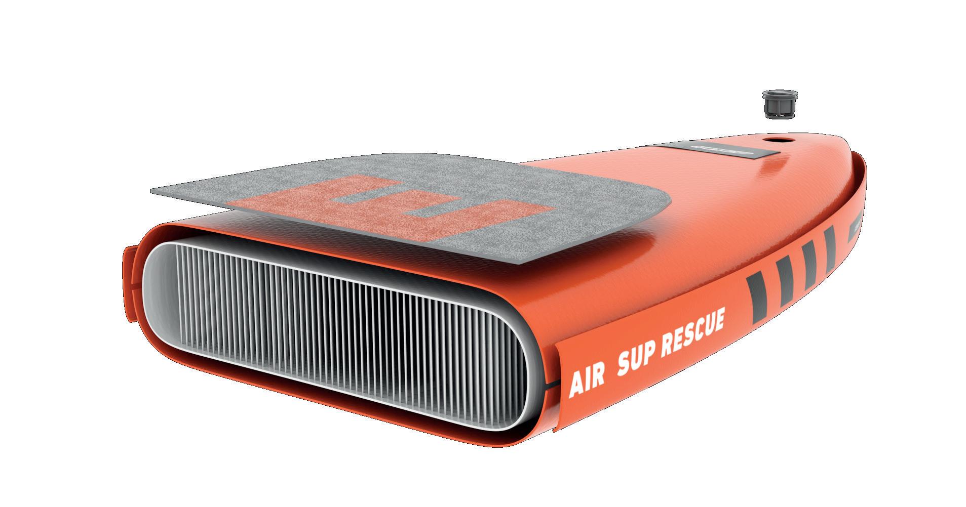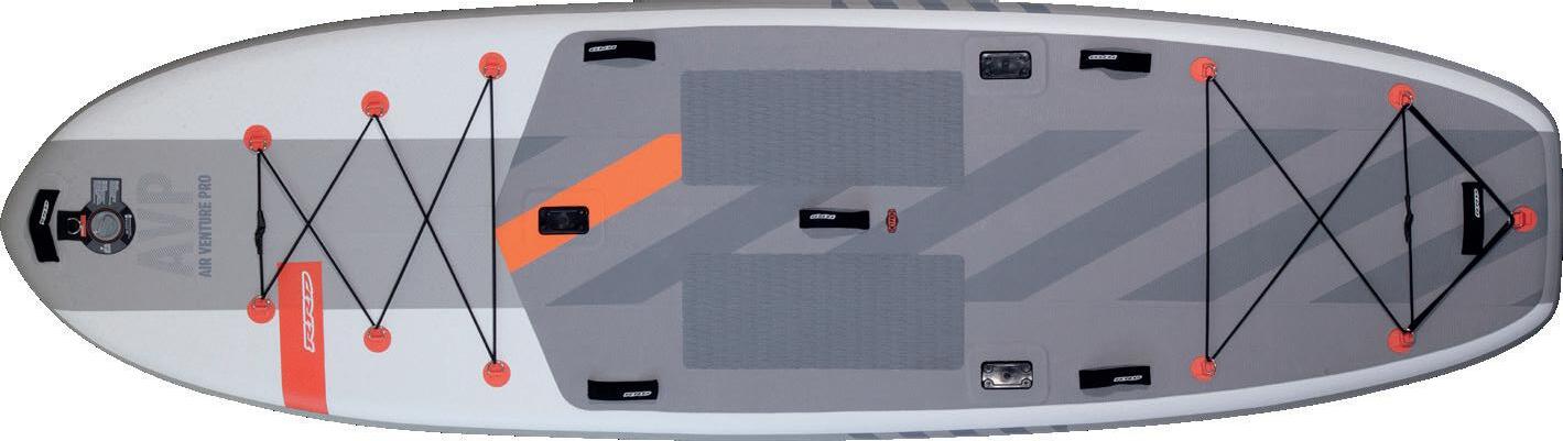 The stability is maximized through a squared rail design, which is much more pronounced at the level of the tail and in the whole area of the paddle stroke zone. The thin crocodile surface lightweight sectorial EVA pads contribute to lightweight since they are positioned only on the important stepping areas.