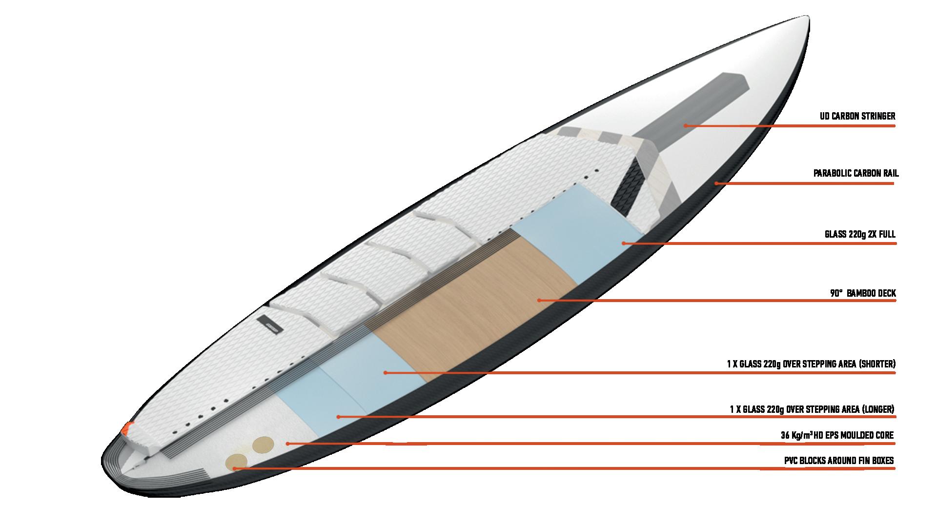 > SLIGHT CONCAVE DECK TO ENHANCE STABILITY AND COMFORT IN LONG DISTANCES
