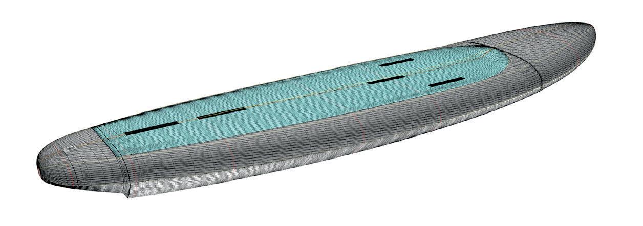 The deep concave of the bottom creates a perfect water flow without interruptions, even at the end of the stroke, when the paddle is at the extraction moment. Thanks to the large surface, the square and massive tail guarantees acceleration and comfort in downwind racing.