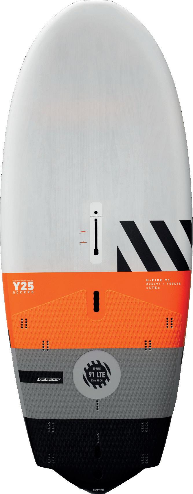The H-Fire 91 has all the features for a great foiling experience at any level. The board is 236 x 91cms of width, with a wide tail area that makes it easy to get up on the foil and control it. The 236cms length will make your learning process an easy one and will become extra functional once you try your first jibes. This board is also very handy when foiling at high speed when you need control during touch downs and works well also for a standard fin windsurfing ride.