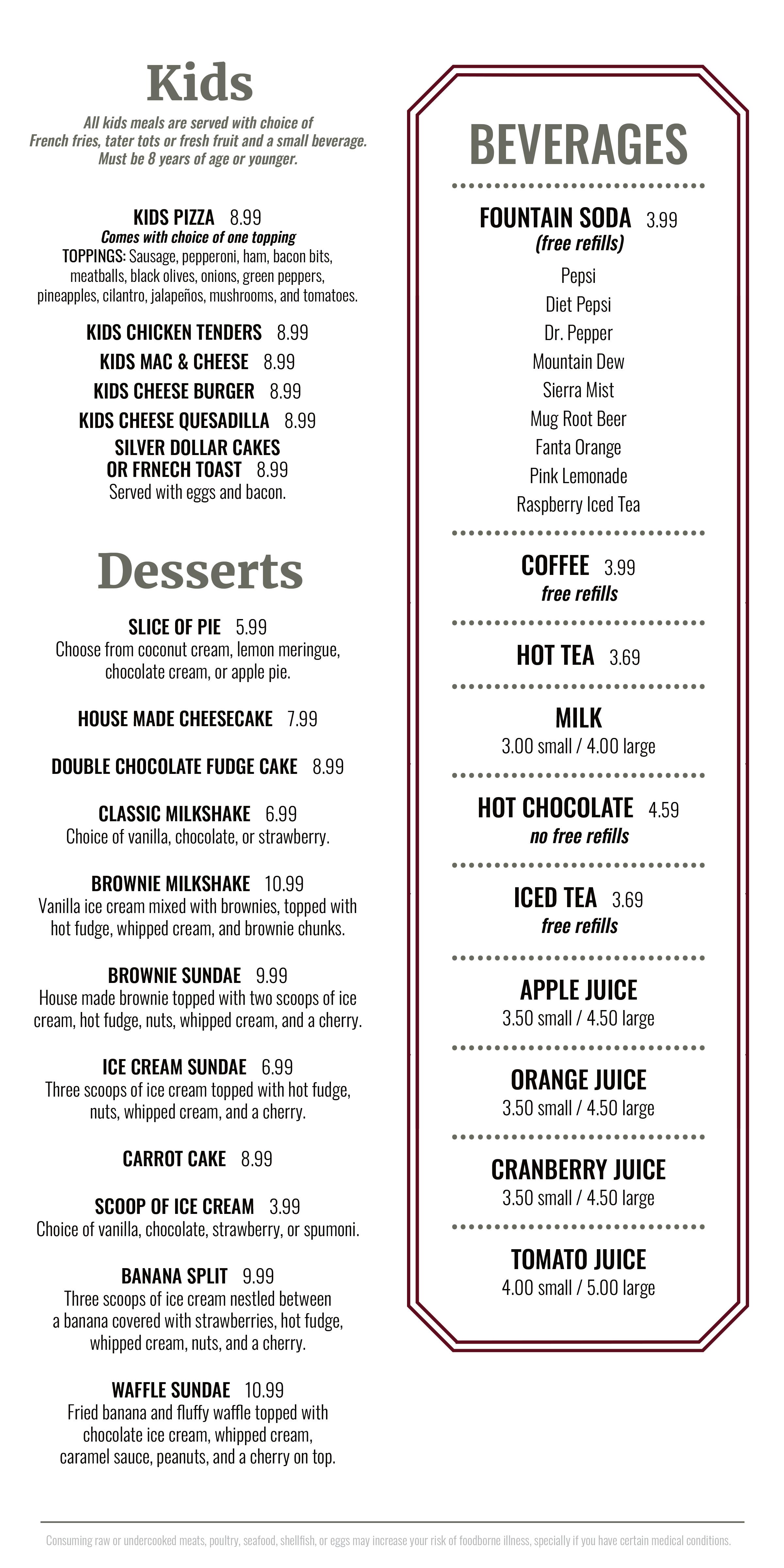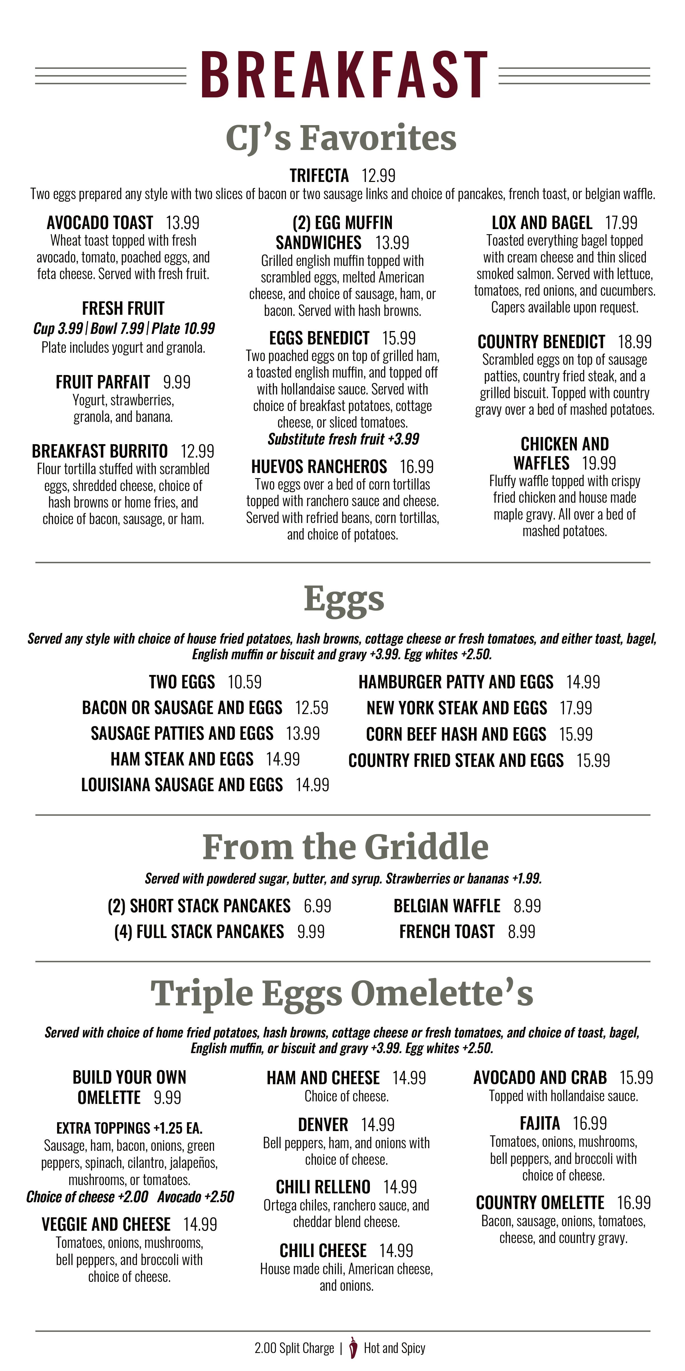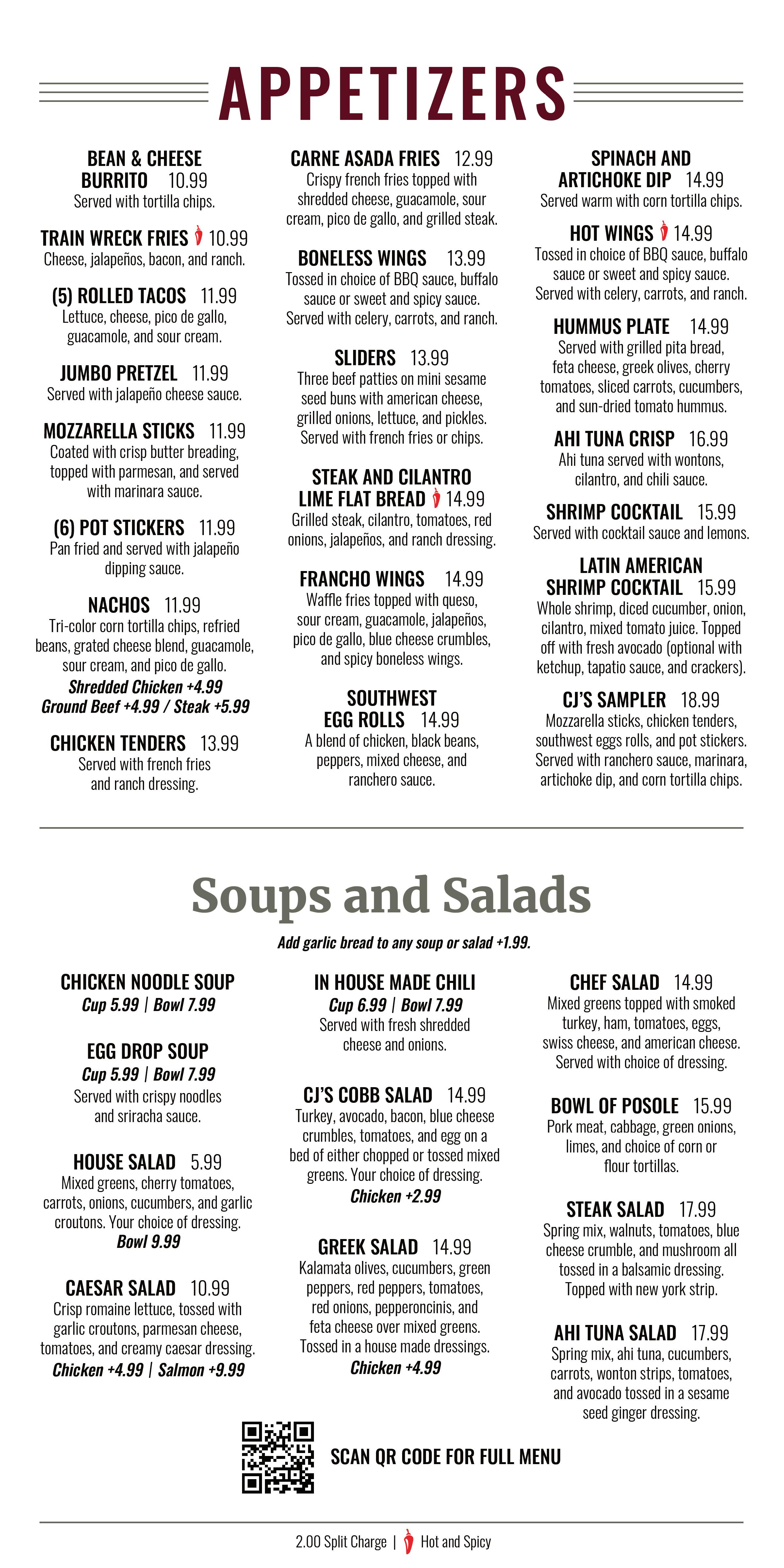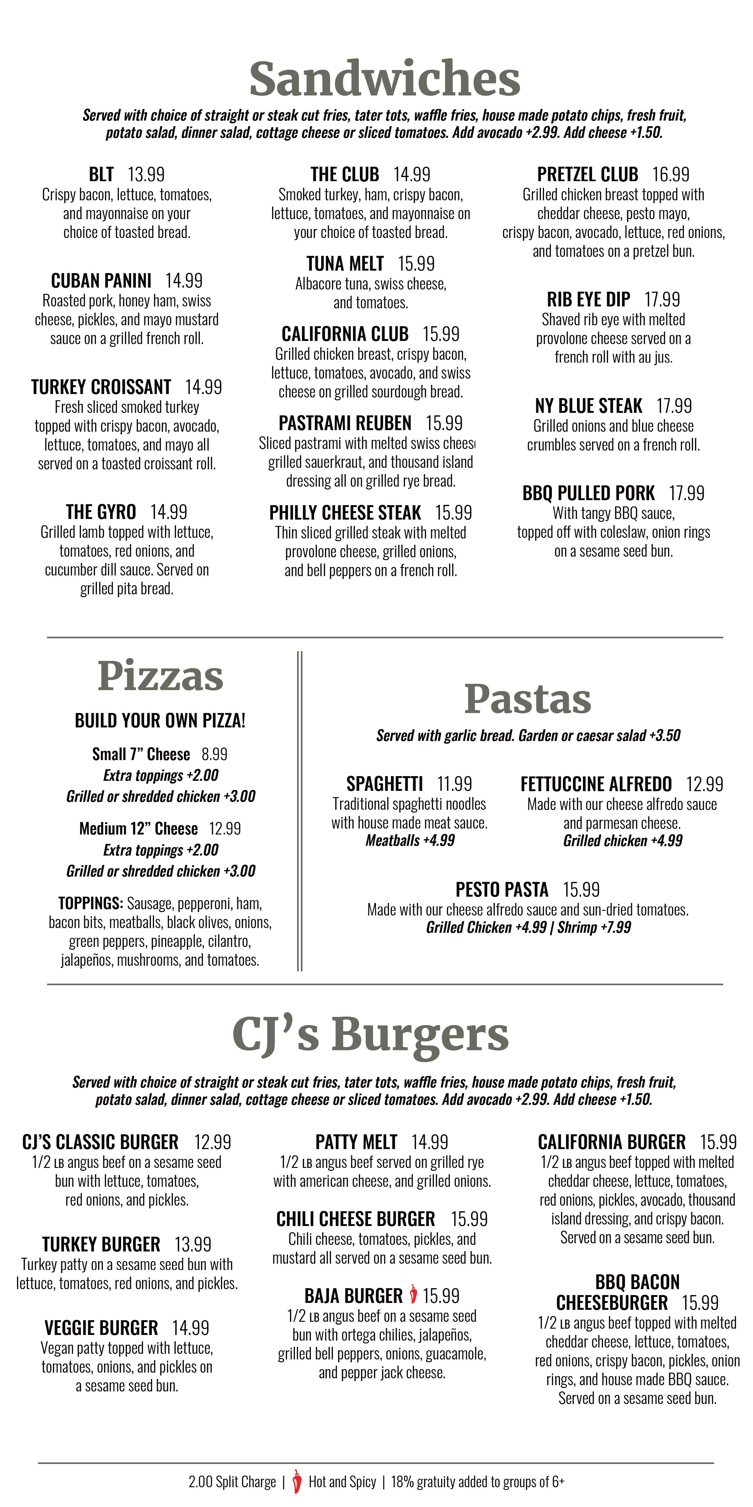 CJ's Sports Grill & Turf Club Menu