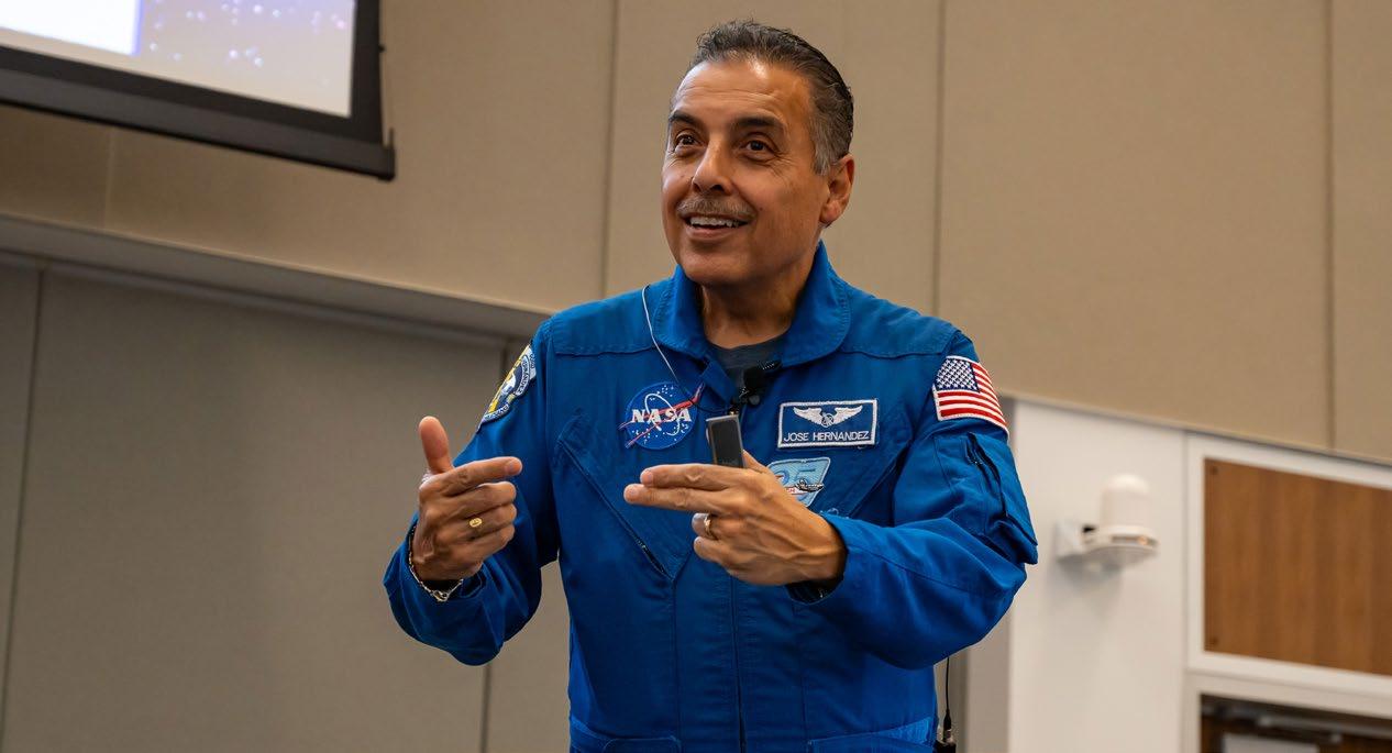 students and members of the general public, Hernández captivated the audience with stories from his career — both in aerospace and biomedical engineering. His firsthand accounts of working at NASA, training as an astronaut, and eventually traveling aboard the Space Shuttle Discovery to the International Space Station served as a powerful reminder of what is possible through persistence and education.