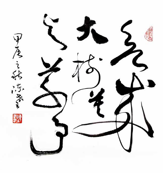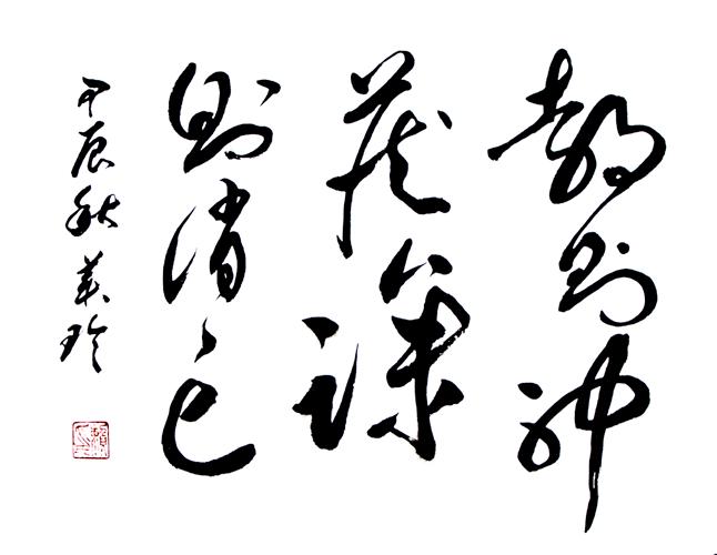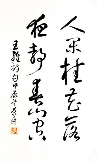 格式:斗方 書體:草書 出處:王維《鳥鳴澗》詩句 釋文: 人閒桂花落 夜靜春山空
