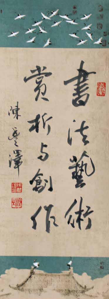 格式:條幅 書體:草書 出處:懷素《自敘帖》句 釋文: 顏刑部,書家者流,精極筆法,水鏡之辨,許在末 行。又以尚書司勳郎盧象、小宗伯張正言,曾為歌 詩,故敘之曰:開士懷素,僧中之英,氣概通疏, 性靈豁暢,精心草聖。積有歲時,江嶺之間,其名 大著。故吏部侍郎韋公陟,覩其筆力。