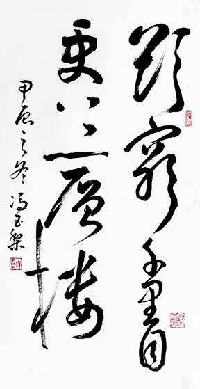 書體:草書 出處:王之渙《登鸛雀樓》句 釋文: 欲窮千里目,更上一層樓。