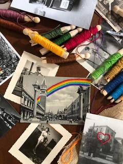 Andréa de Maison Bousier initie à la broderie à partir d’anciennes cartes postales pour tisser des liens et révéler son potentiel créatif