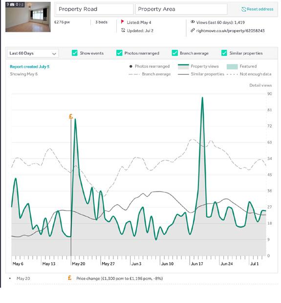 We monitor the level of interest, the amount of enquiries and the number of viewings booked. Below you can see two activity reports and the price points on Rightmove, which demonstrate how two different approaches performed in the same marketplace.