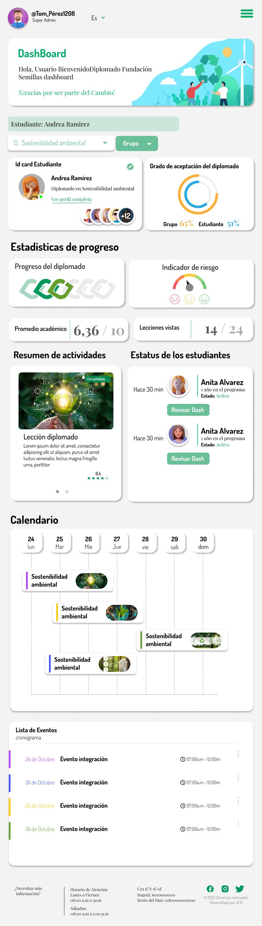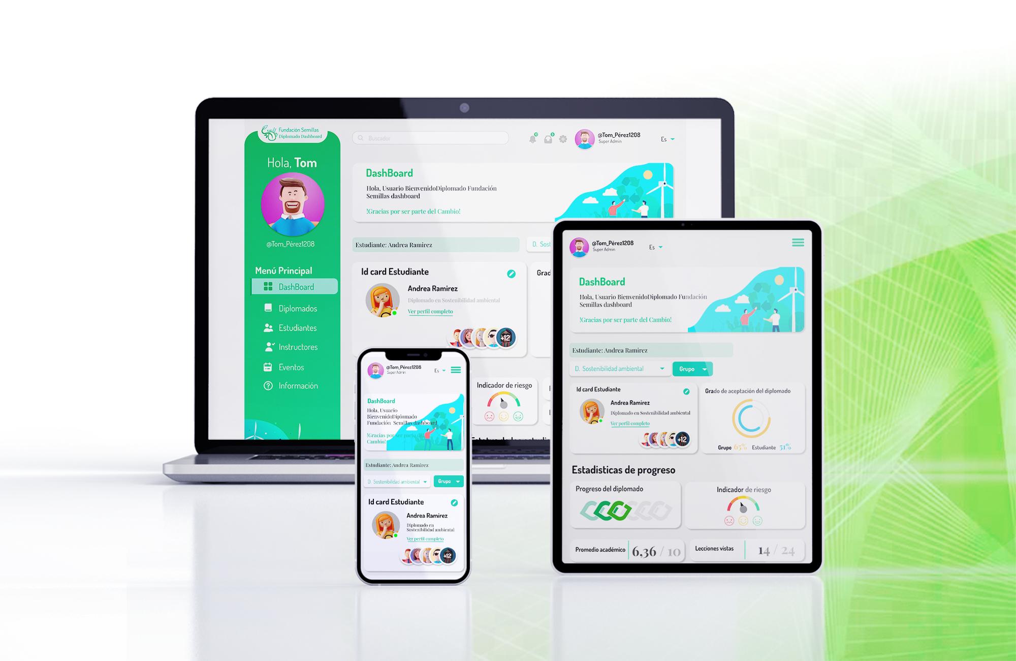 Nuestro principal enfoque es el de brindarle al usuario en calidad de Super Admin el acceso a datos en tiempo real de la calidad educativa y emocional de los estudiantes de los diferentes diplomados ofrecidos por la fundacion.