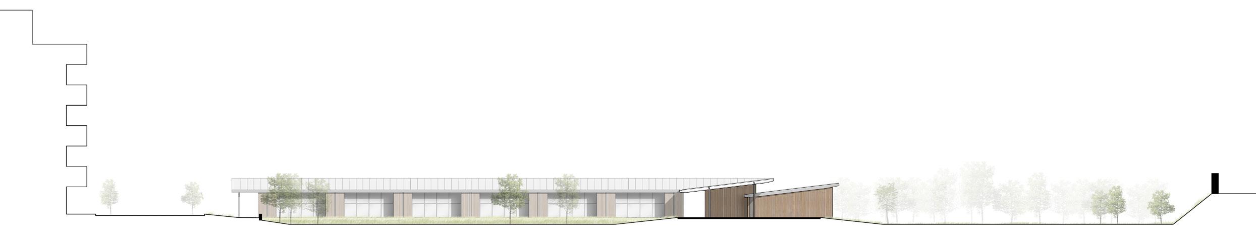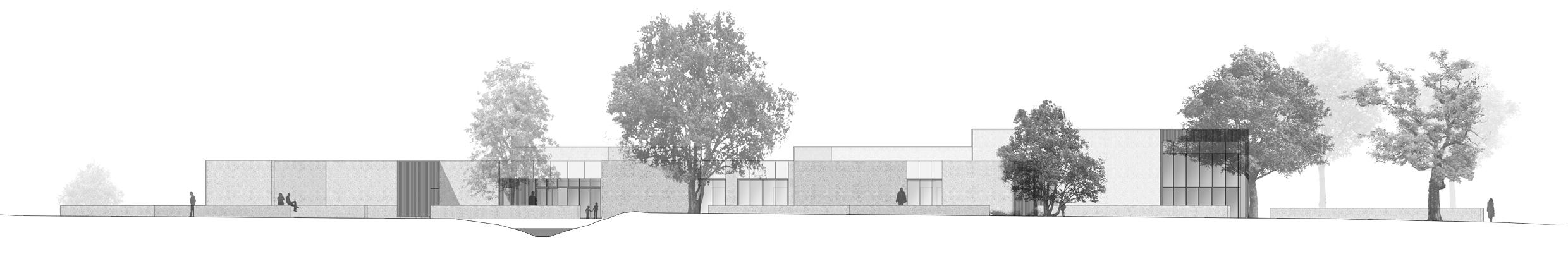 Le choix du terrain proposé par le sujet de concours à été remis en question afin d’offrir plus d’espace aux enfants. L’école prend ainsi place dans un vaste parc et s’intègre selon les axes structurant que sont le Lez et l’avenue.