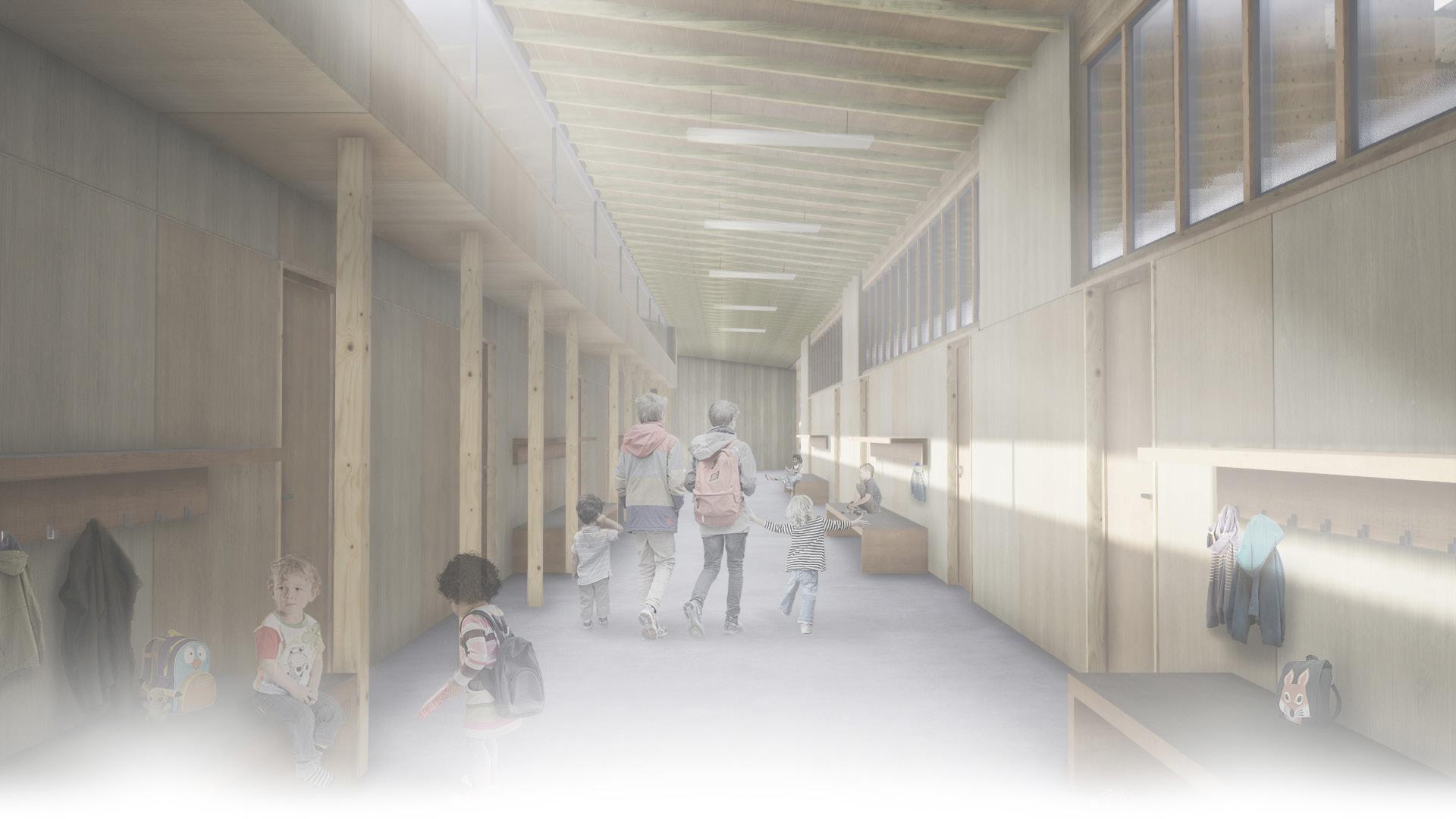 Le programme contient une salle de motricité des espaces différenciés selon les ages espaces necessaires à la restauration et espaces extérieurs.