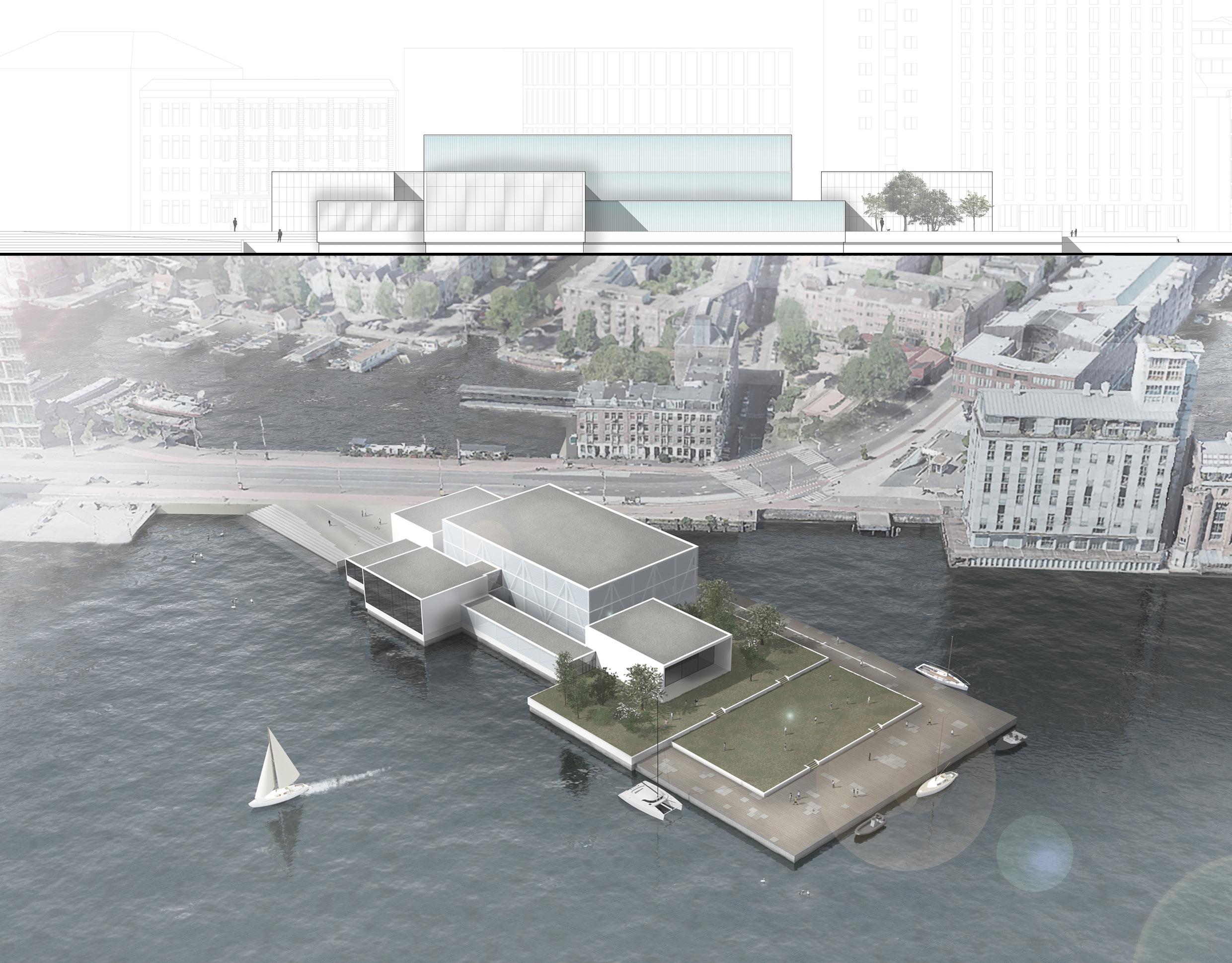 Nous devions ici transformer une parcelle péninsulaire, autrefois utilisée à des fins industrialoportuaires. Le caractère du site et de la ville ont poussé le projet à se développer comme un bâtiment singulier, opalescent, qui ressemblerait à une luciole au-dessus de l’eau à la nuit tombée.
