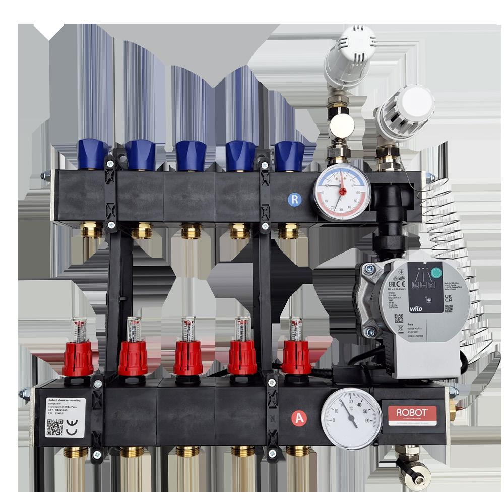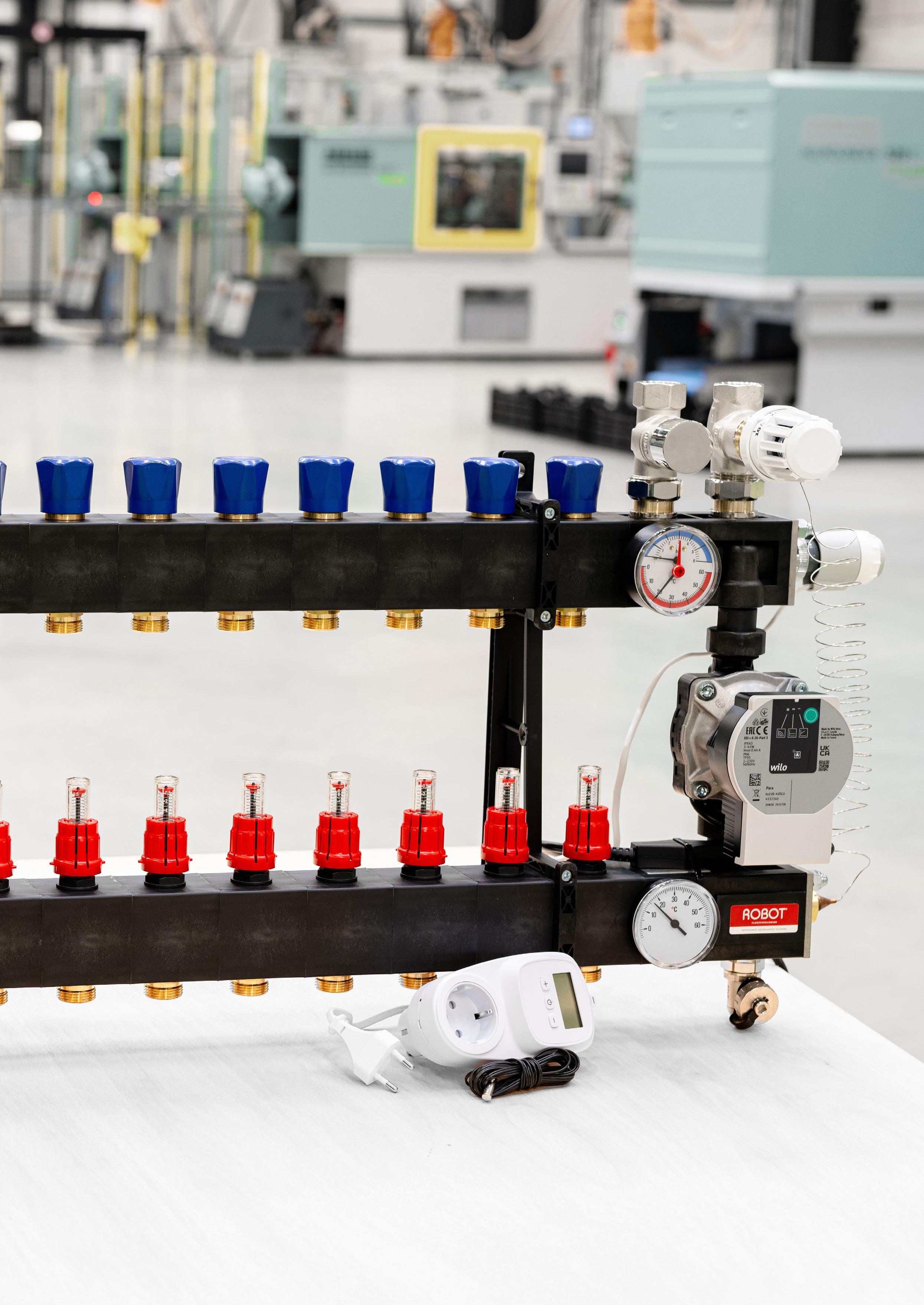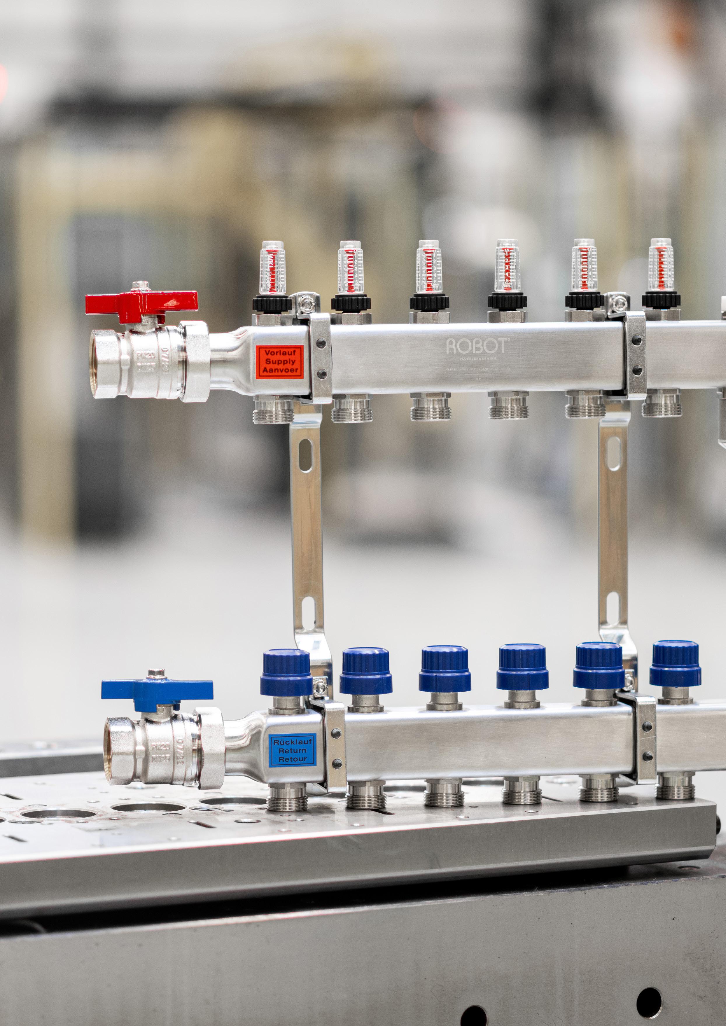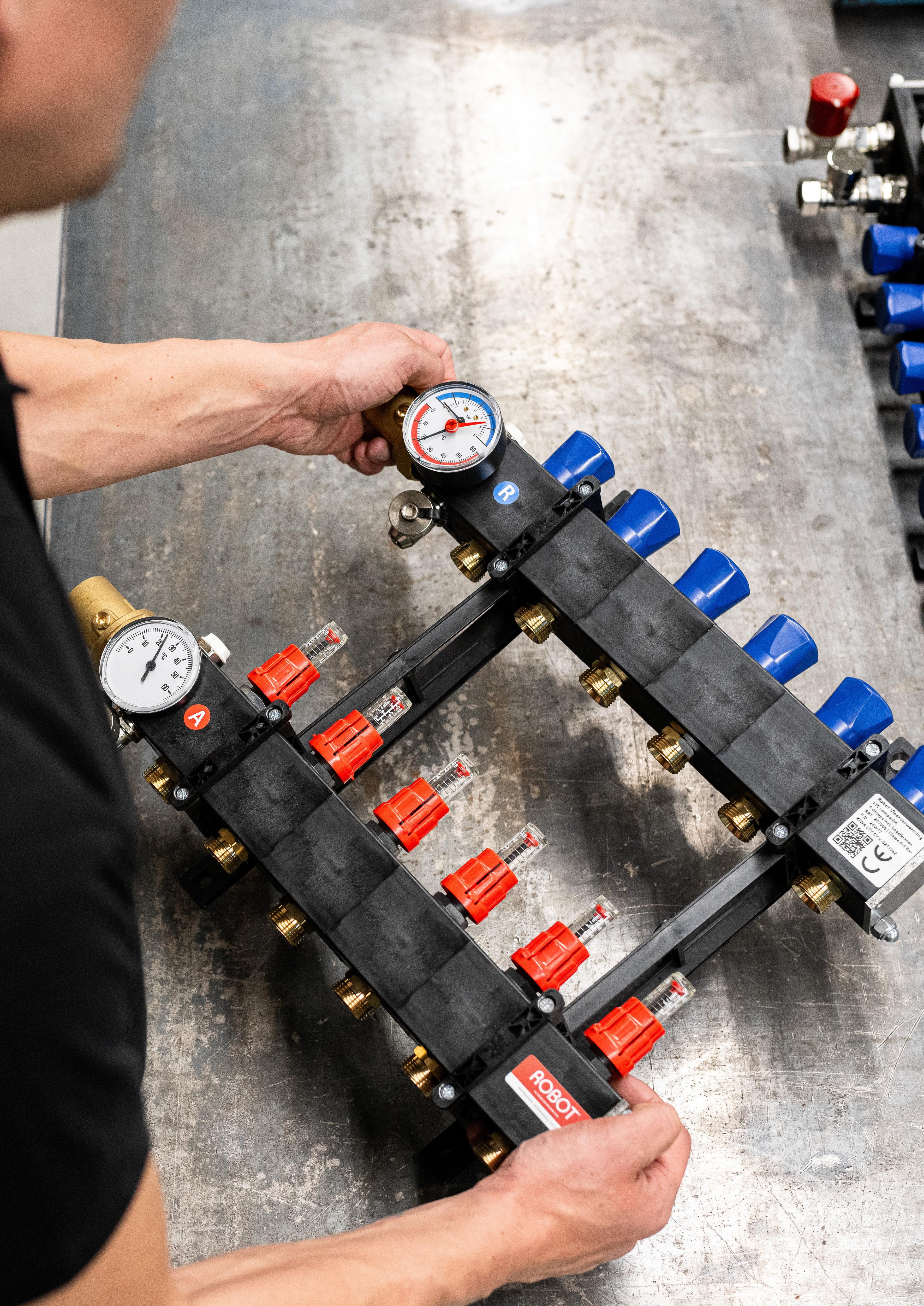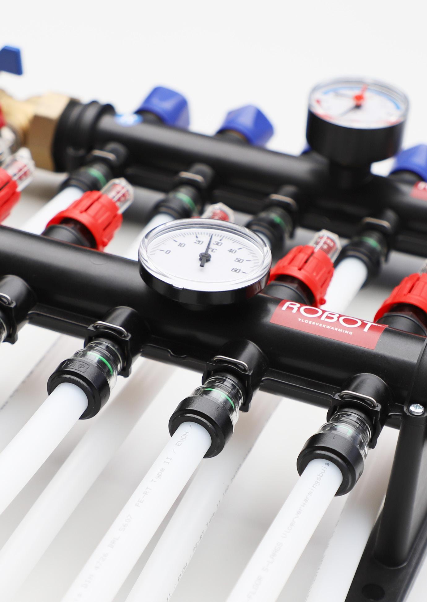 ROBOT levert alles voor een complete vloerverwarmingsinstallatie. Denk hierbij aan verdelers, buis, ruimteregelingen en bevestigingsmaterialen. Maar ook aan advies, calculaties en legplannen. Alles onder één dak, zorgvuldig op elkaar afgestemd.