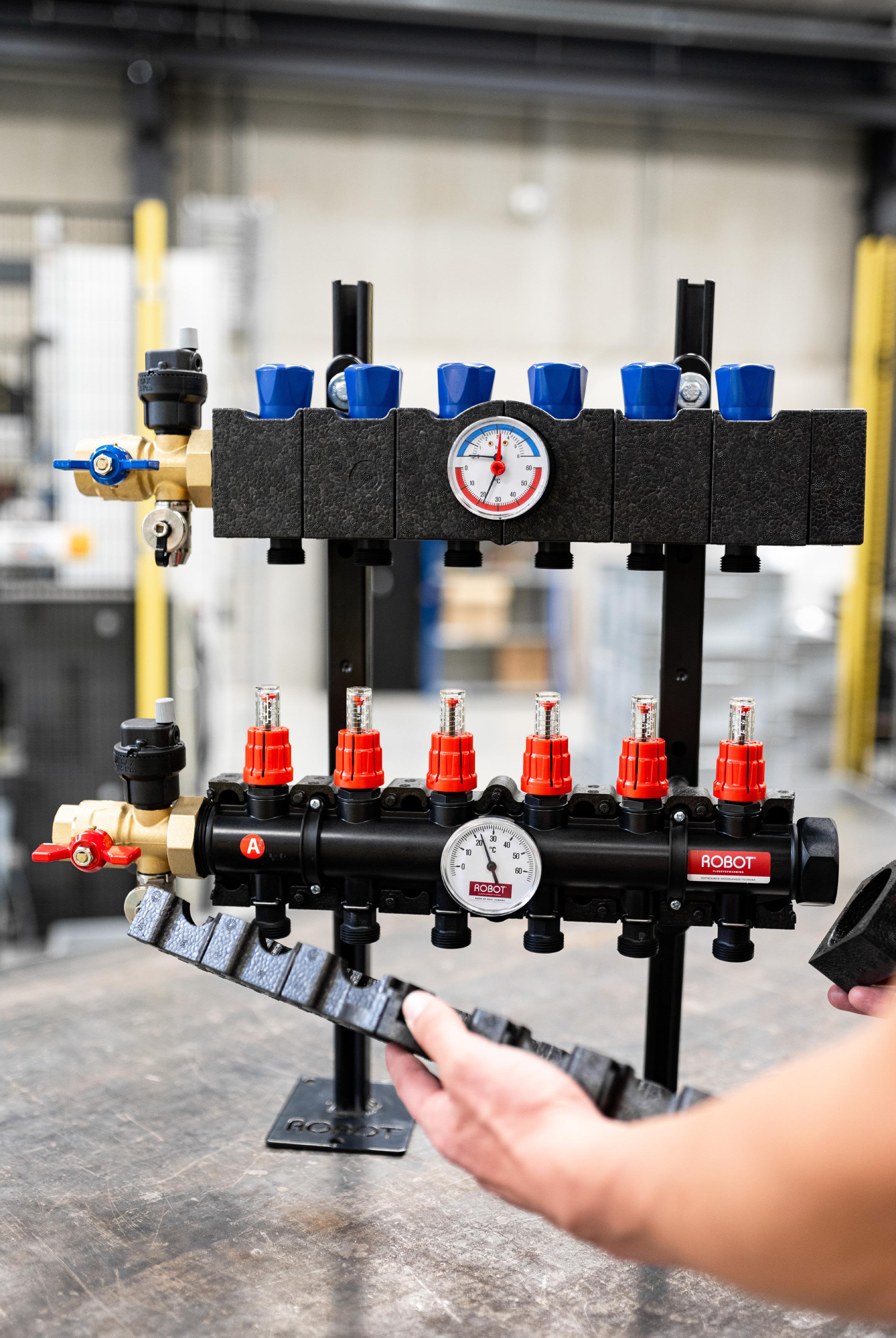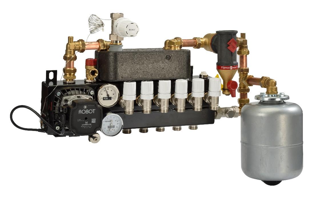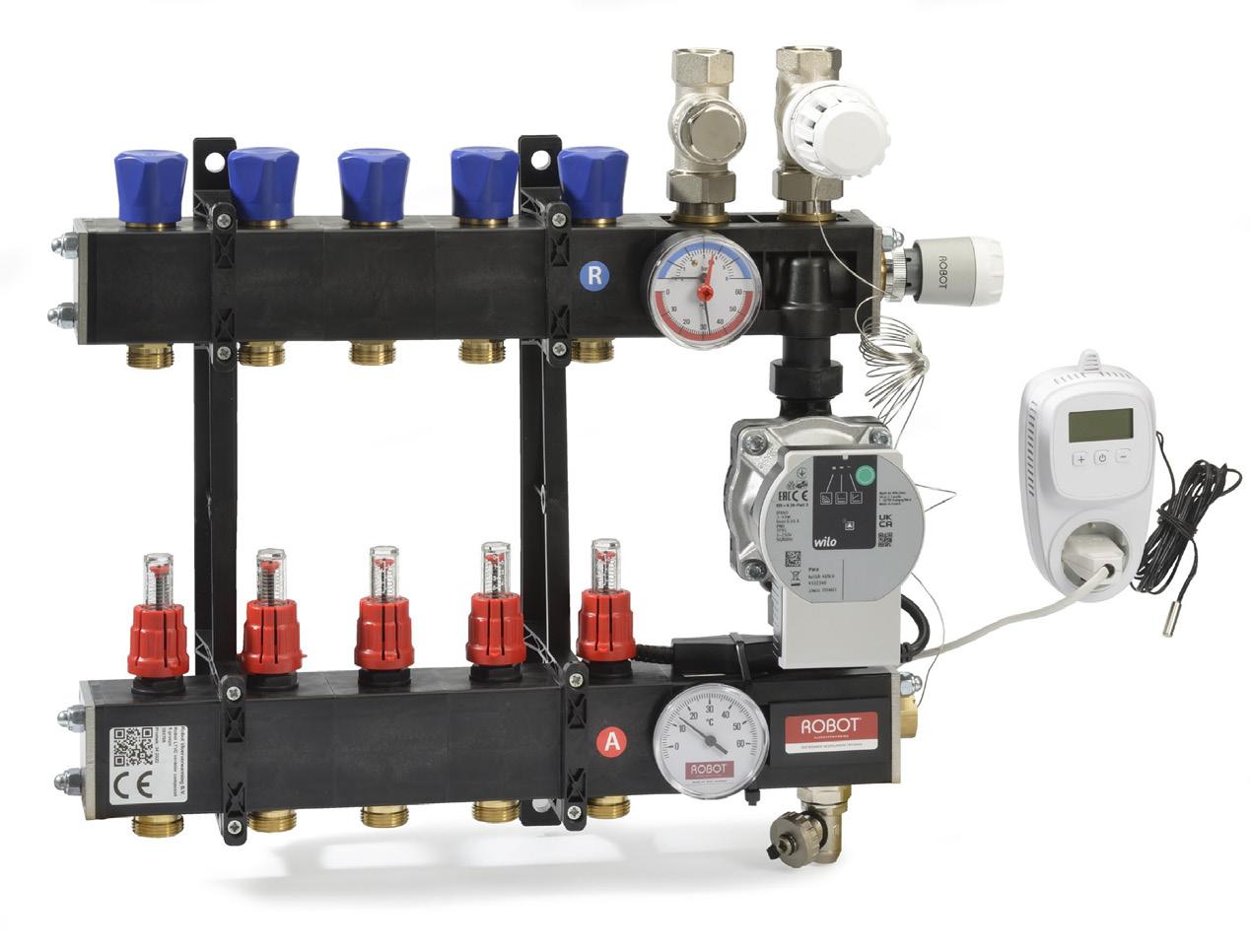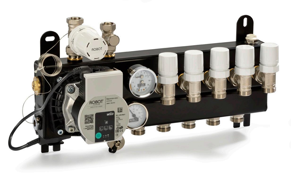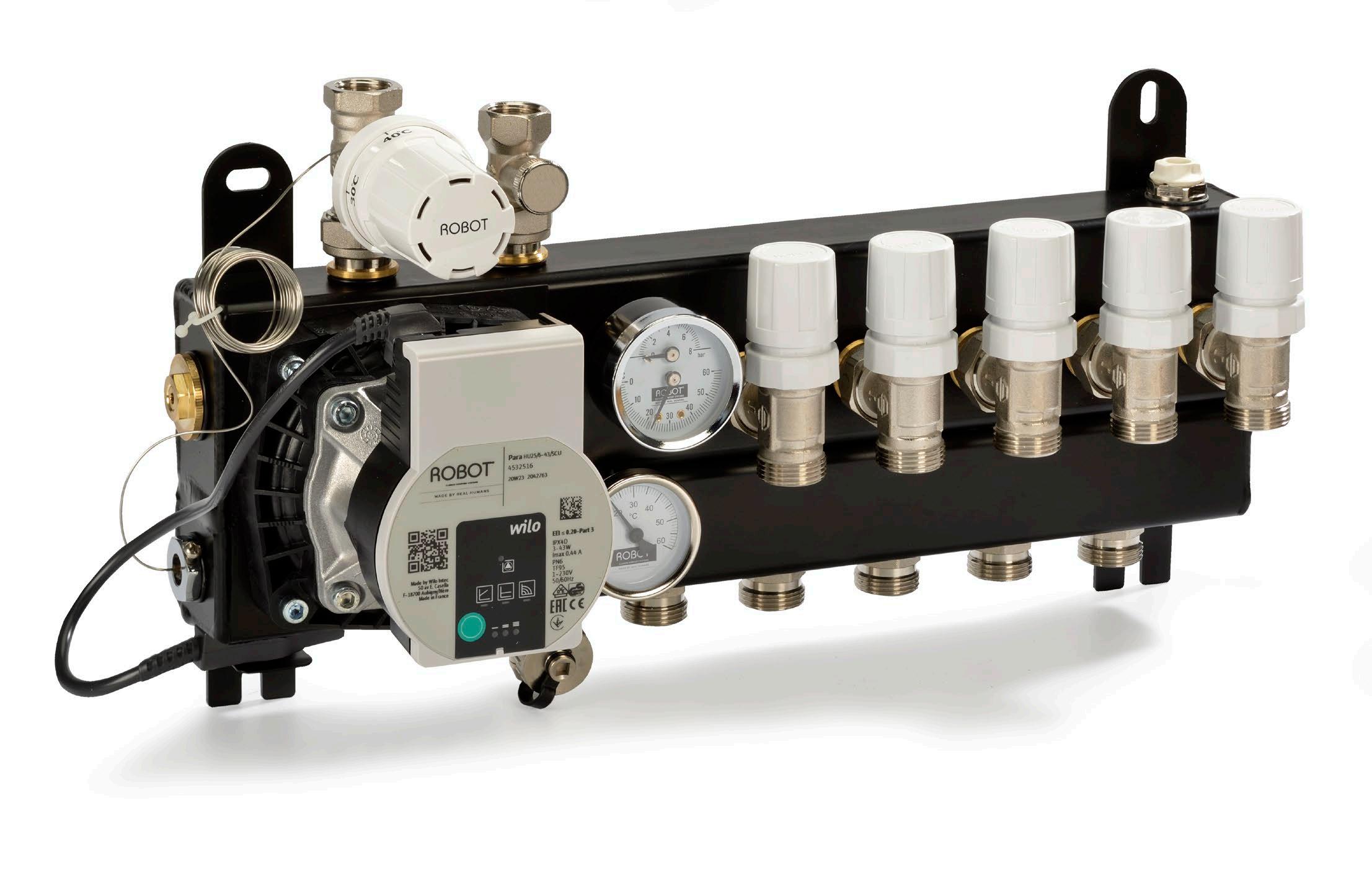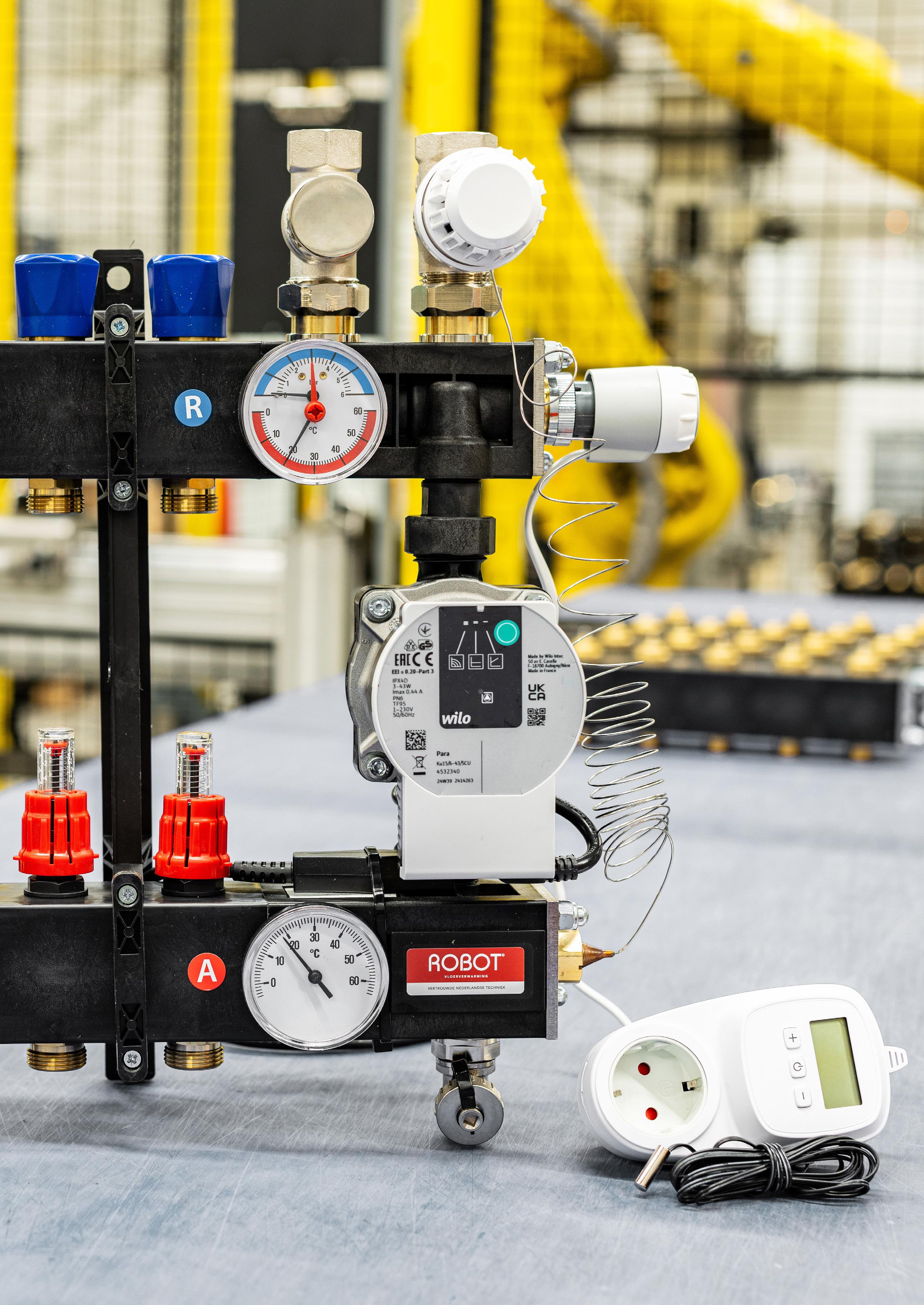 ROBOT levert alles voor een complete vloerverwarmingsinstallatie. Denk hierbij aan verdelers, buis, ruimteregelingen en bevestigingsmaterialen. Maar ook aan advies, calculaties en legplannen. Alles onder één dak, zorgvuldig op elkaar afgestemd.