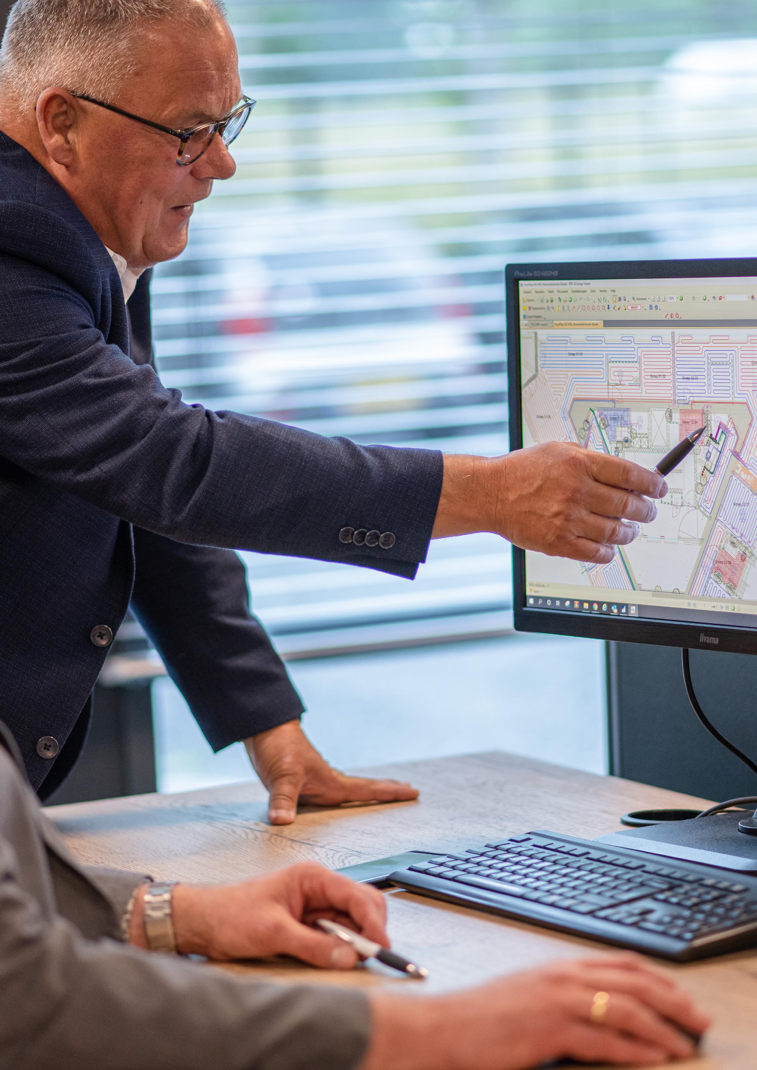 Vanuit de warmteverliezen en het toe te passen systeem wordt de aanvoertemperatuur, hart op hart afstanden en de massa-stromen berekend. Aan de hand van deze calculatie kan het legplan worden gerealiseerd.