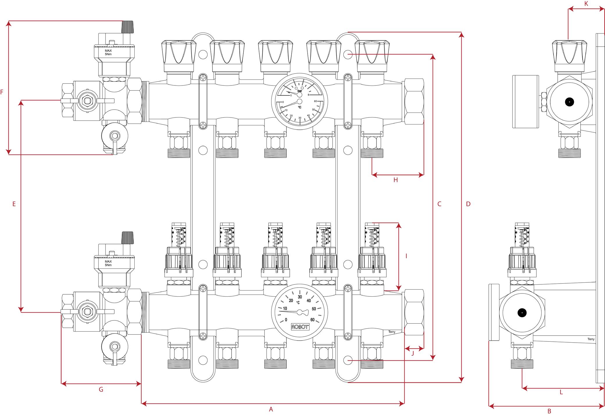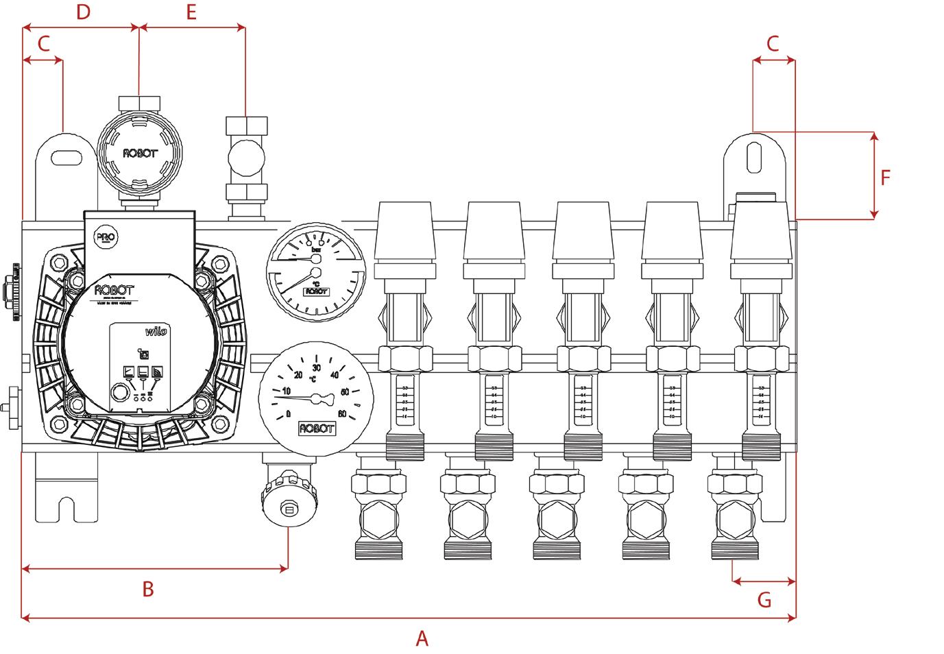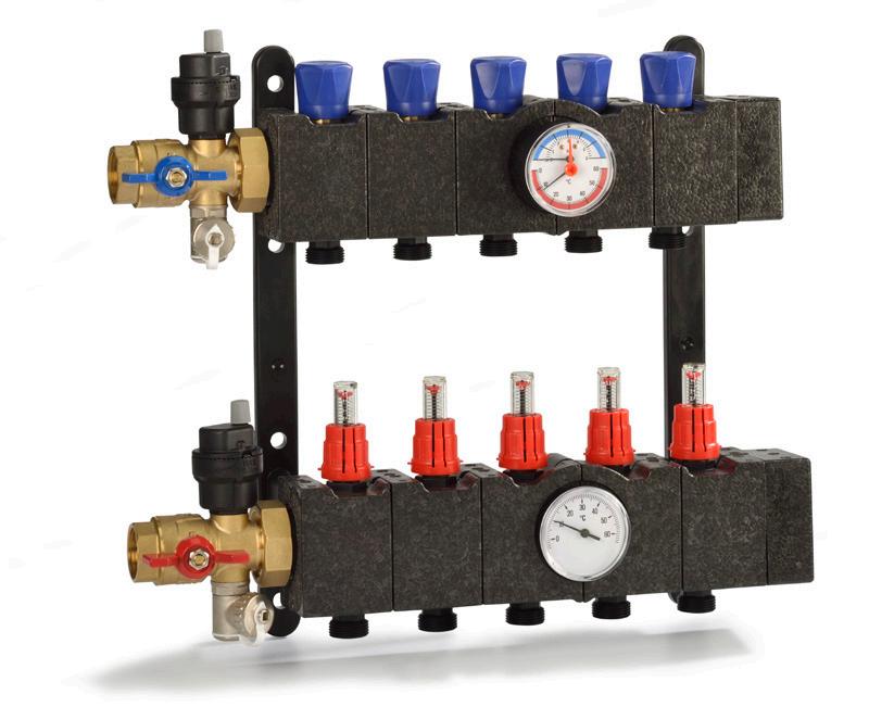 De ROBOT LTVC is een composiet verdeler met pomp. De verdeler van composiet is geschikt voor systemen met een hoge- en lage aanvoertemperatuur. De ROBOT LTVC verdeler is voorzien van een inregelventiel, waardoor het mogelijk wordt om de vloer-retourstroom in te regelen. In combinatie met deze composiet verdeler uitsluitend diffusiedichte buis toepassen, conform DIN 4726.