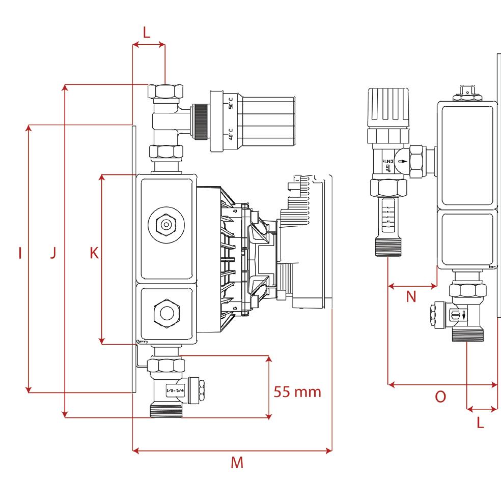B1. Dubbel instelbaar thermostaatventiel CV aanvoer 3/4” High-Flow