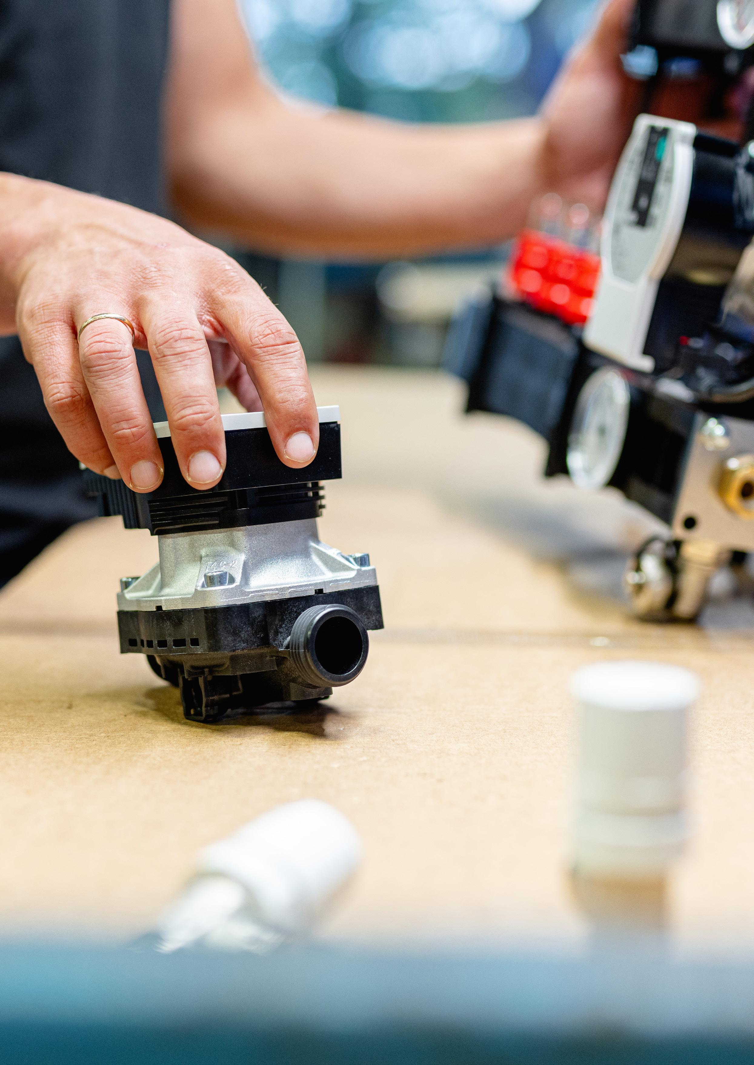 Een hybride warmtepomp vraagt om een nieuwe innovatieve verdeler voor vloerverwarming. Deze unieke variant op onze LTVC verdeler heeft een geïntegreerde pomp én elektronische regeling, waardoor de mengverhouding in de verdeler automatisch wordt aangepast aan de actuele aanvoertemperatuur. In combinatie met deze composiet verdeler uitsluitend diffusiedichte buis toepassen, conform DIN 4726.