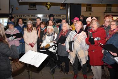and choir outside The Bath Arms Hotel, carols and sea sonal fayre at the Methodist Church.