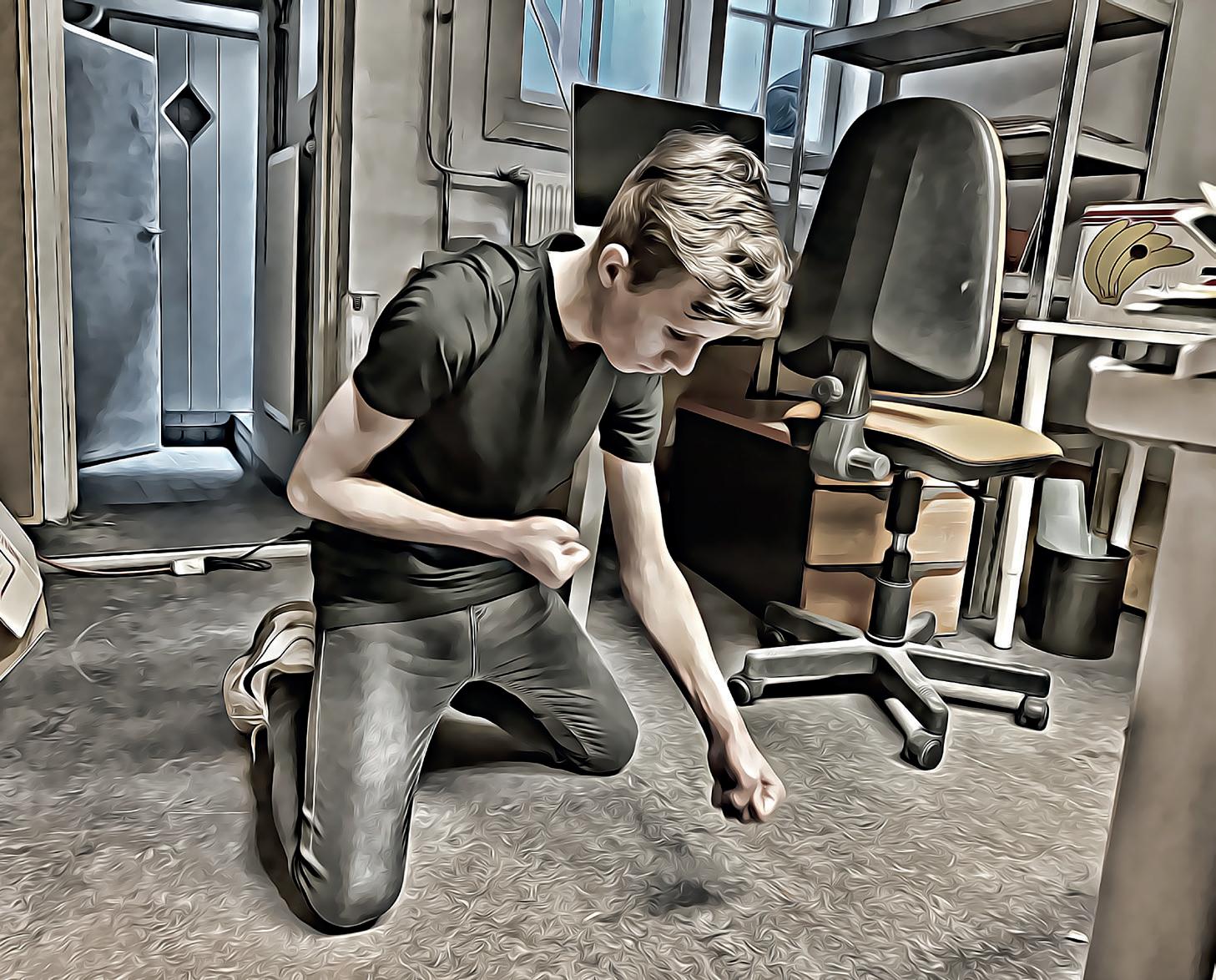 Hij was enthousiast aan de slag gegaan en het schrijven ging hem go ed af. Hij zat dagen rustig aan het bureau van Multatuli, de plek van zijn oudgrootvader Eduard Douwes Dekker, te werken. Tot de dag dat hij niet om negen uur begon, maar al om zeven uur onrustig was opgestaan en na een snel ontbijt naar het museum was gelopen. Nog maar nauwelijks begonnen, hoorde Max gestommel. Hij had niemand de krakende trap op horen komen, dus het moest van beneden komen. Op de bel-etage trof hij niemand aan. Het geluid kwam uit de kelder. Max opende de deur naar de smalle keldertrap en hij rook… hondenpoep. Hij snelde de steile trap af, voelde woede in zich op komen en stond even later tegenover een verblufte Bart Droogstoppel, die net een zakje met hondenpoep openknipte. En hoewel Bart een paar jaar ouder was en een kop groter, vloog Max hem aan. Hij haalde uit met zijn vuist en sloeg Bart Droogstoppel vol op de neus. Bart Droogstoppel viel huilend en schreeuwend achterover. Max sprong boven op hem, greep een zakje met hondenpoep en wreef dat in het bebloede gezicht van Bart Droogstoppel!