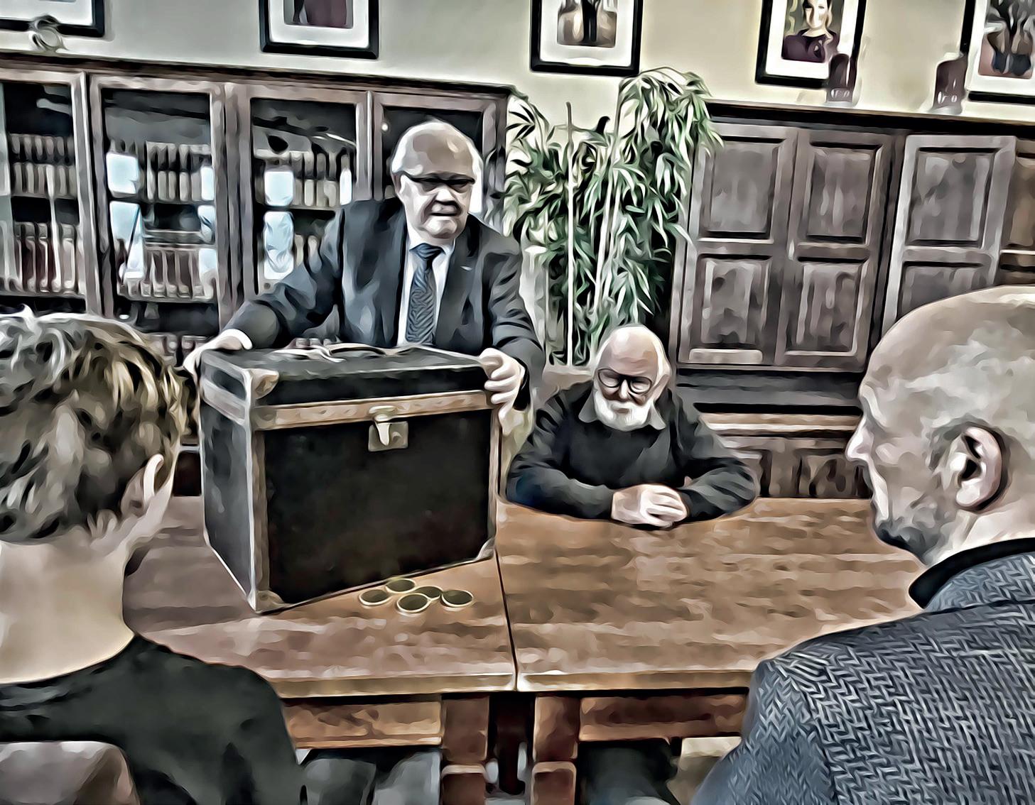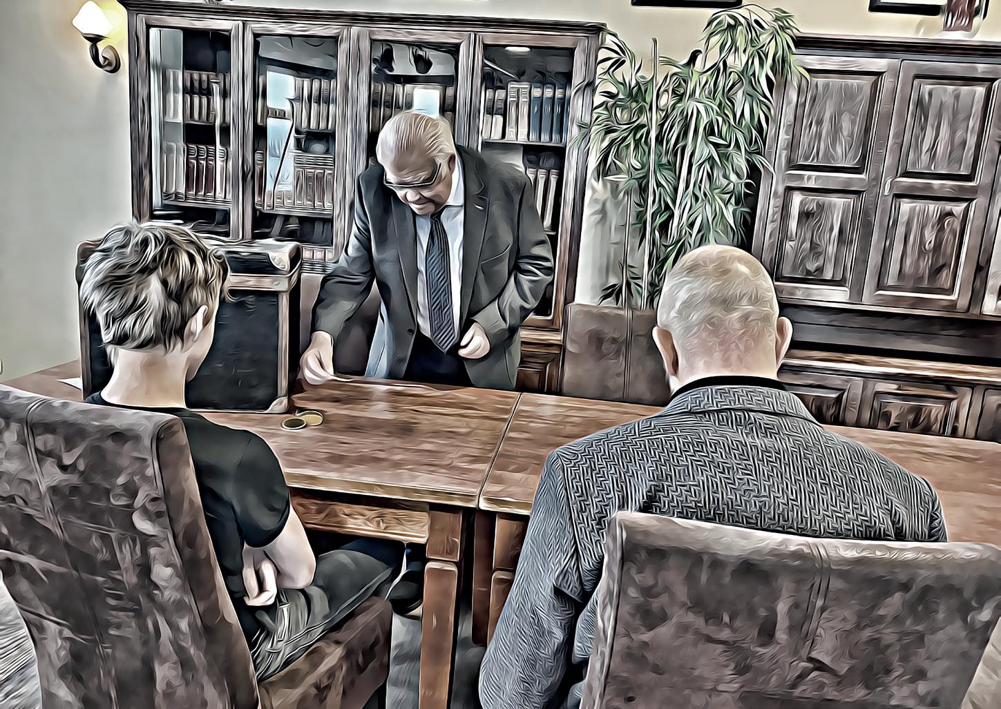 Op dat moment gaat de deur open en een nog oudere man komt het kantoor binnen. Luid roepend: ‘Wat bijzonder, wat bijzonder!’ Het is de vader van de notaris.