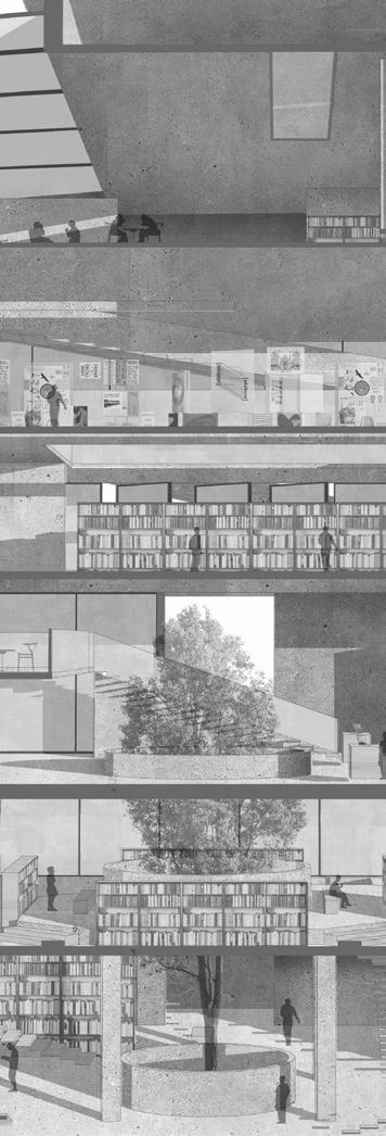 The site sits between a commercial zone to the west and a residential area to the east. At a macro level, the design seeks to bridge these two zones, creating a civic space that encourages urban interaction. At the micro level, the concept of ‘Roam’ supports freedom in movement and reading behaviour, encouraging users to explore the space in a non-linear way and making the experience of reading and discovery more engaging.