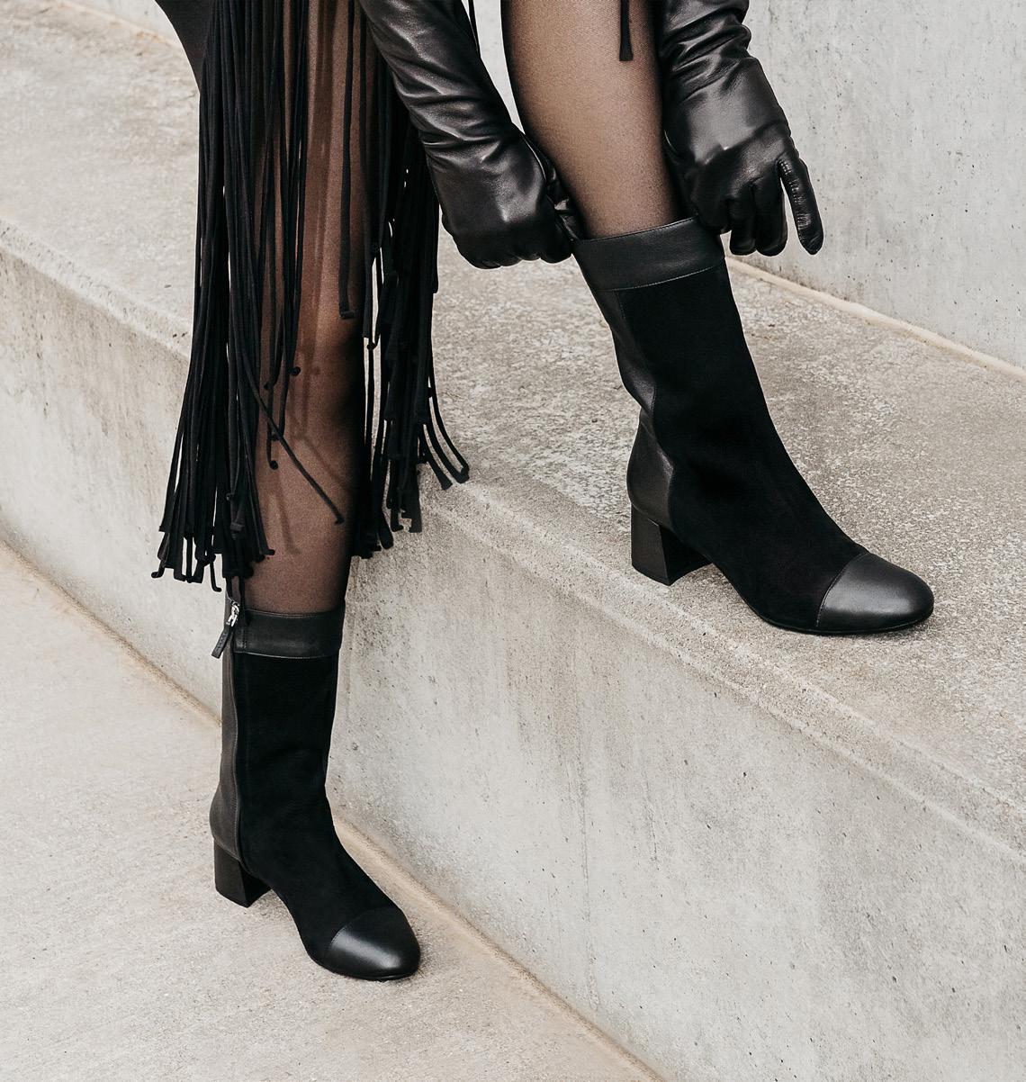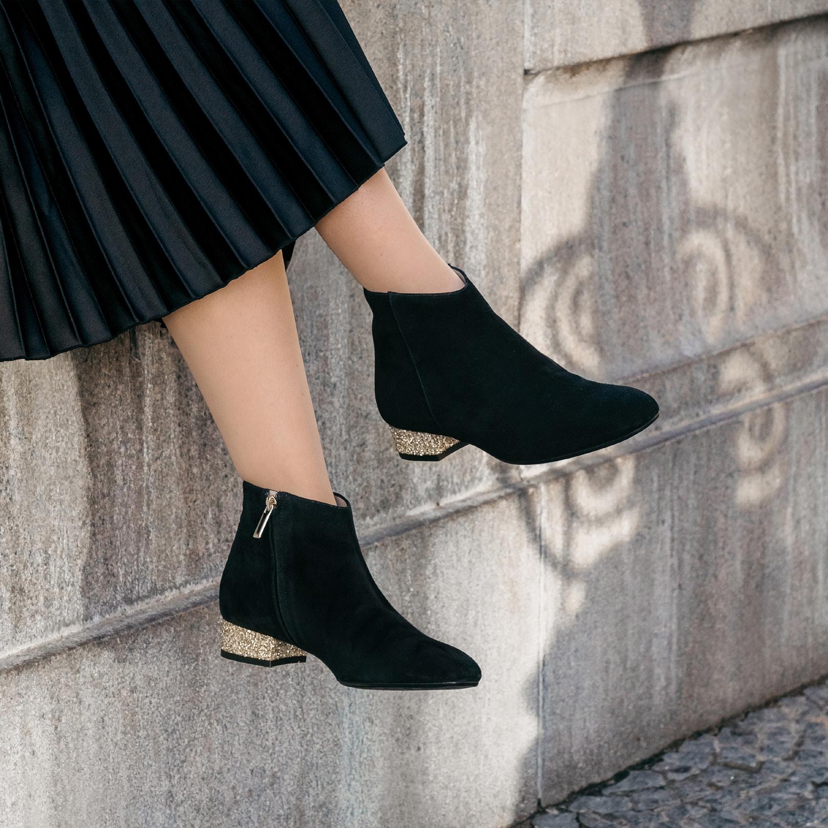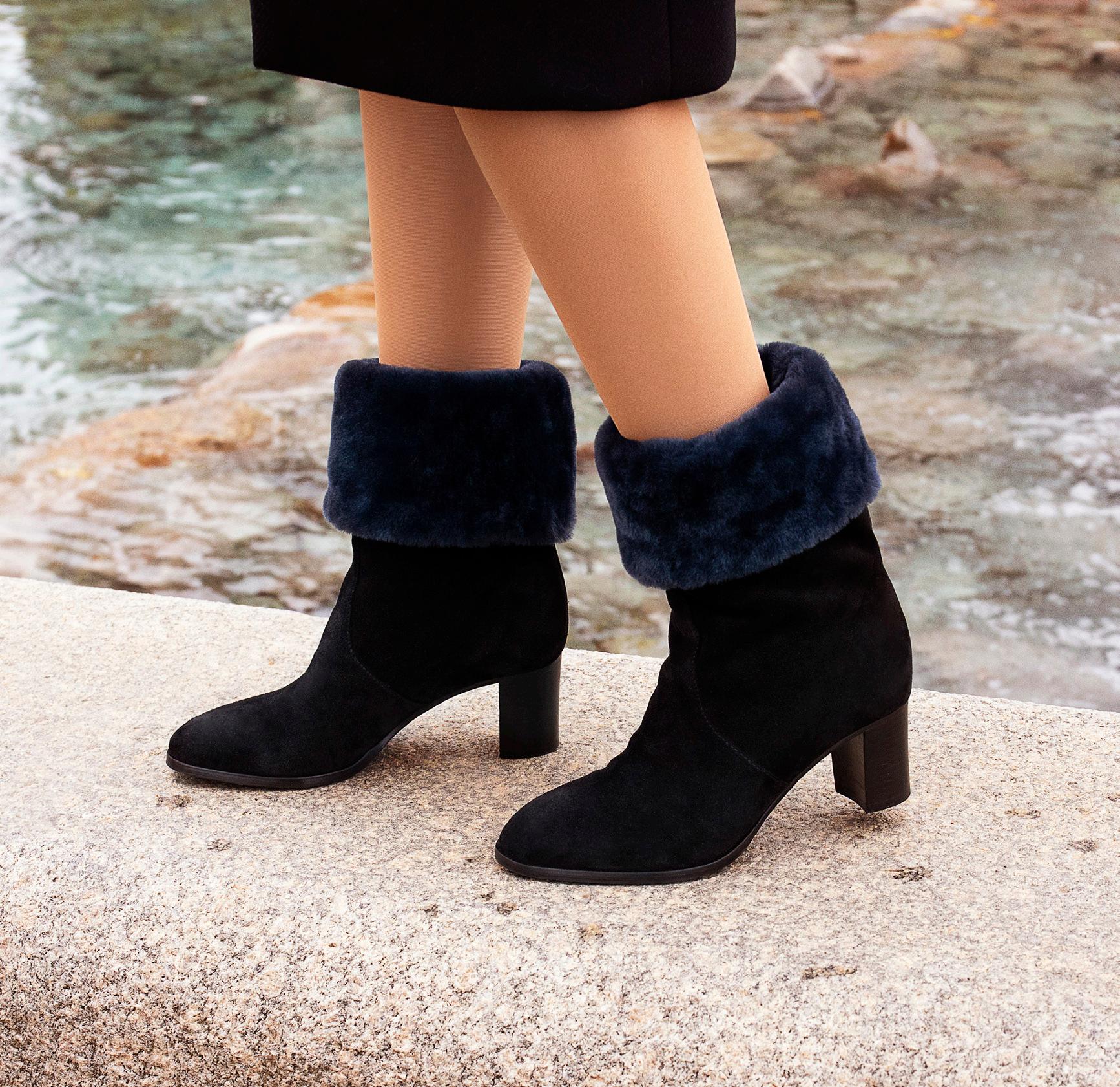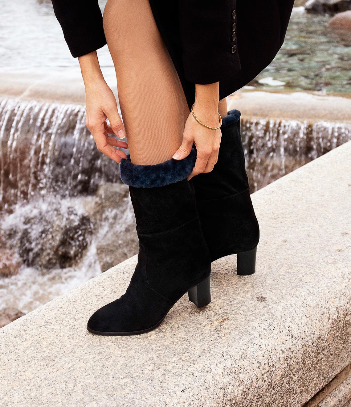 The anna winter black boot is our very first winter boot made from water-resistant soft Italian split suede with a warm soft shearling lining. Made in soft suede, this shoe will fit most feet perfectly.