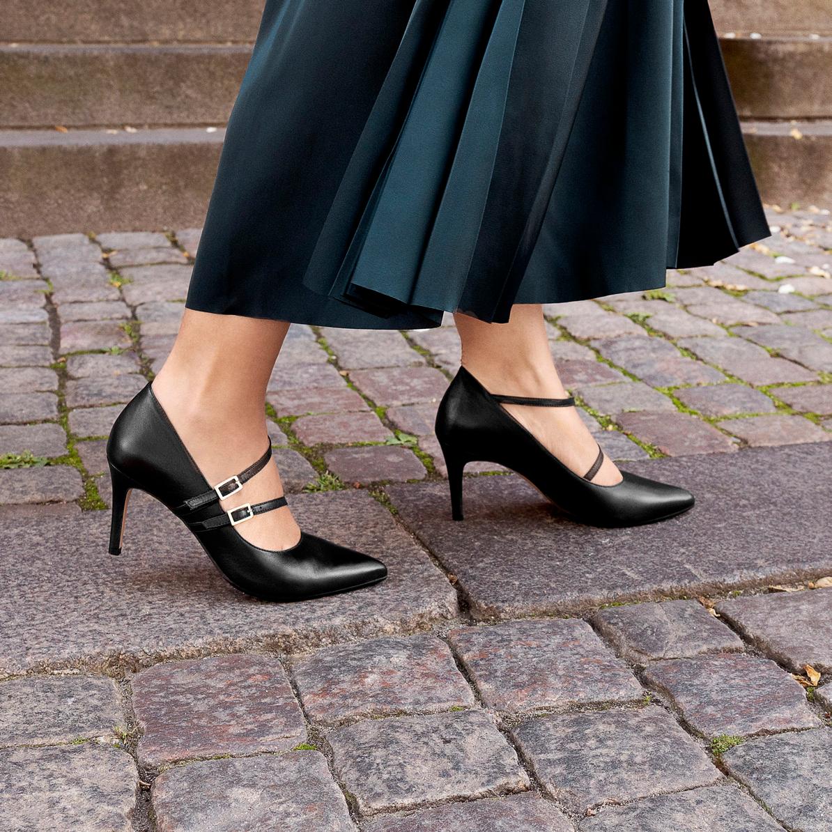 Feminine with a twist. The 5 cm heel, round toe, and block-heel make this one of our best sellers. Our scientifically-validated orthopedic insole relieves pressure from your feet, allowing for maximum comfort.