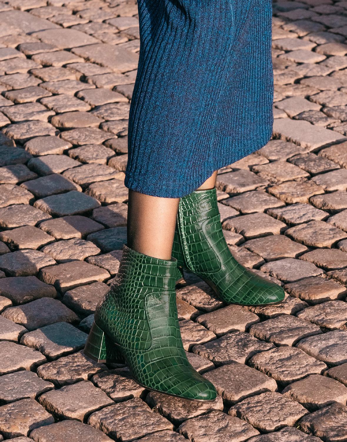 She has a low cut, so she isn’t too tight around the leg and can fit all calves. The unique and wide staccato heel keeps you on your feet all year round, and the delicious leather makes her the perfect companion for all kinds of weather.