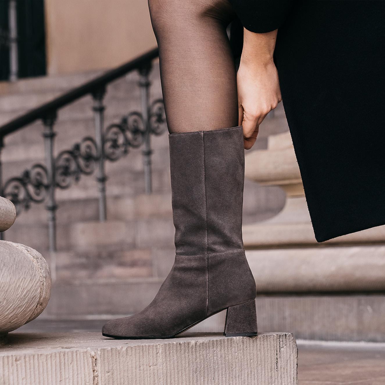 An exciting addition to our family, bellucci is our very first high-shaft boot, complete with signature cutlines in order to optimize the leather consumption and reduce waste. She is made of the softest suede and nappa.