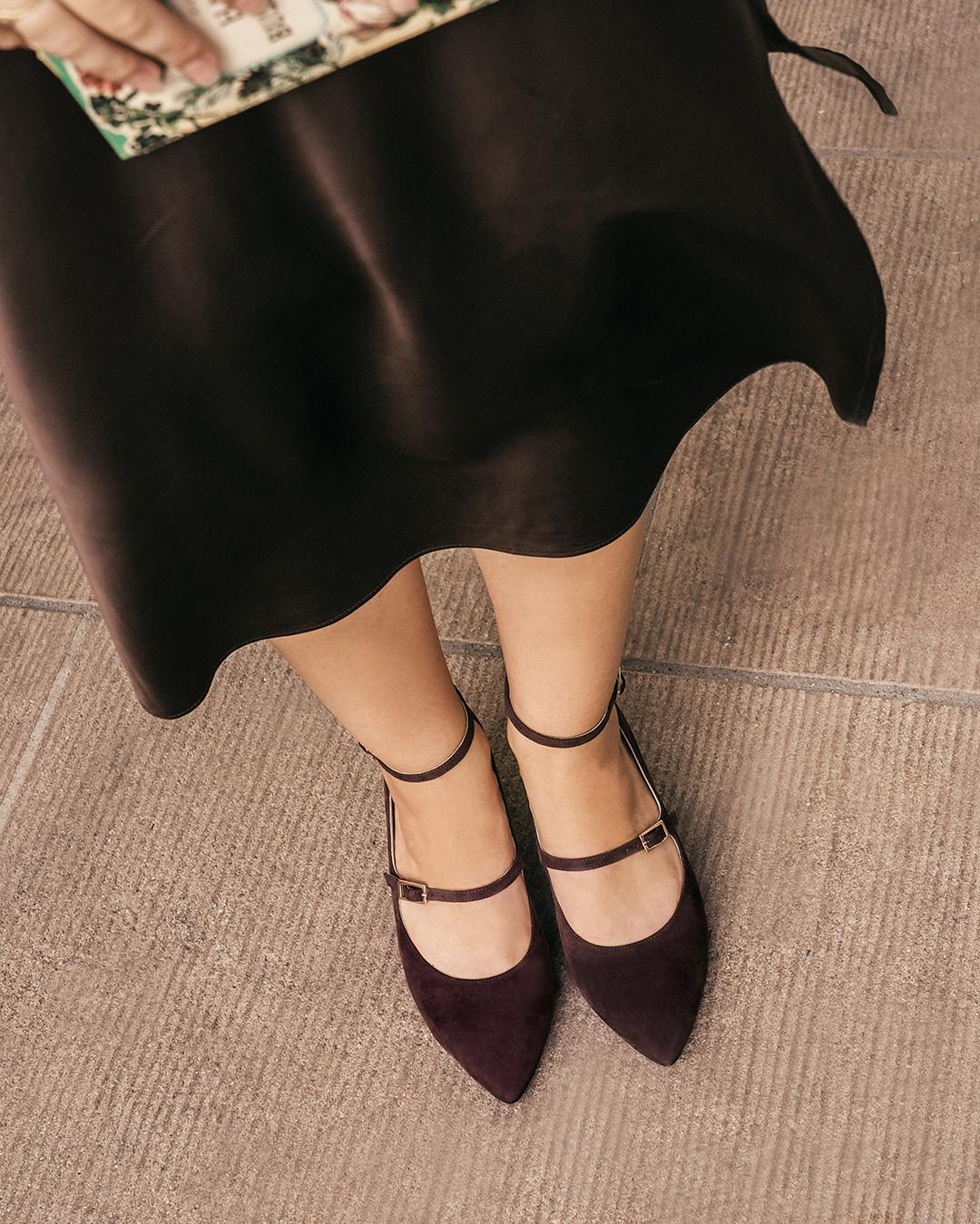 A comfortable ballerina with a 2.5 cm heel, made of soft Italian suede with leather lining. The perfect shoe to wear on a daily basis.