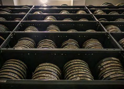 Racks of film reels stretch to the ceiling in VSW’s collections room.