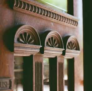 Isaiah House can shelter two residents at a time, each in one of two rooms on the first floor. With stained-glass windows, herringbone wood floors, stunning built-in bookshelves, a fireplace, a grand staircase and relief plaster ceilings, the house is both ornate and warm. Nearly every piece of furniture was donated by community members. Behind the house sits a vast English rose garden that has been on the property for decades.