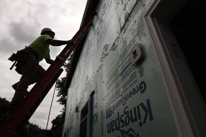 Meikota Rigge helps lift drywall at a Habitat for Humanity house on Parsells Ave. in Rochester. Rigge is an AmeriCorps Volunteer working with Habitat.