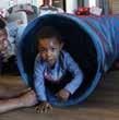 Day care provider Richard Morris plays with 6-month-old Noemi Andrews. Monroe County is in a child care crunch, as providers like Morris are hard to come by. See page 8.